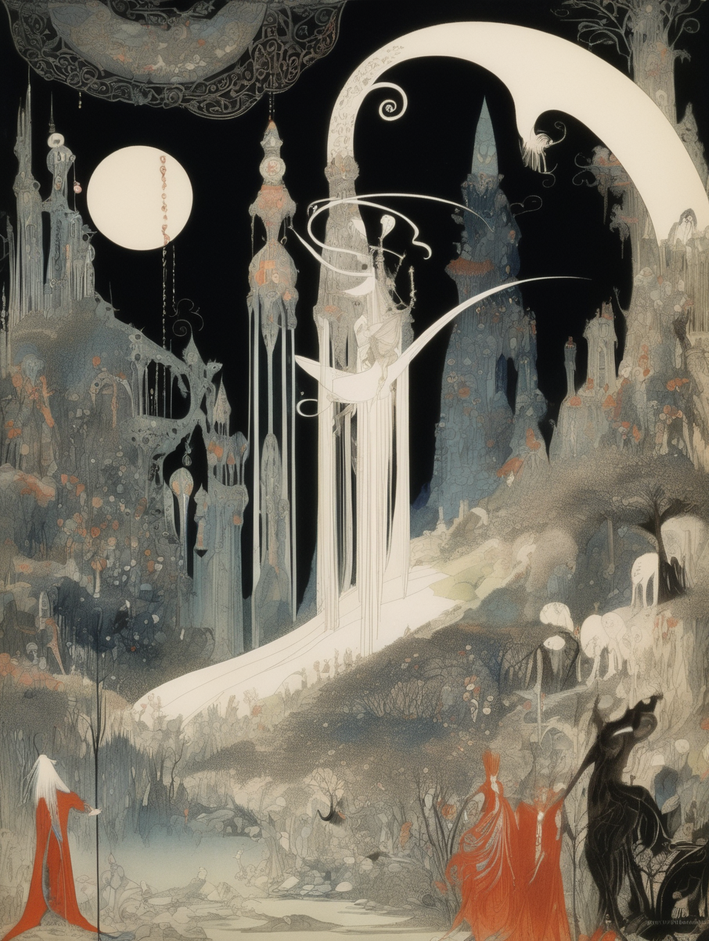 One of his most notable works is his illustrations for the fairy tale collection "East of the Sun and West of the Moon." These illustrations showcased Nielsen's mastery in depicting mythical creatures, enchanted landscapes, and intricate patterns, capturing the magical essence of the fairy tales.