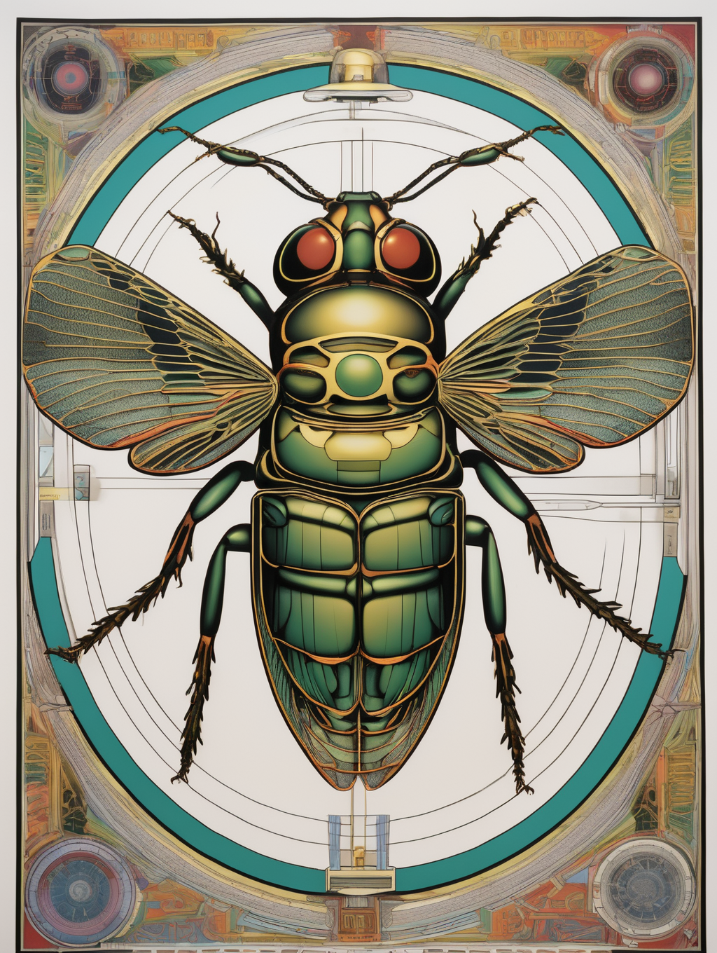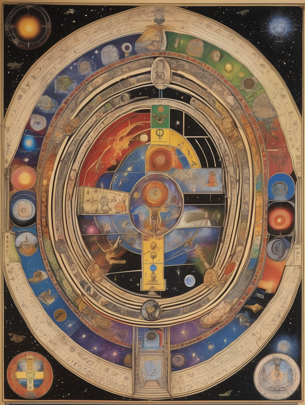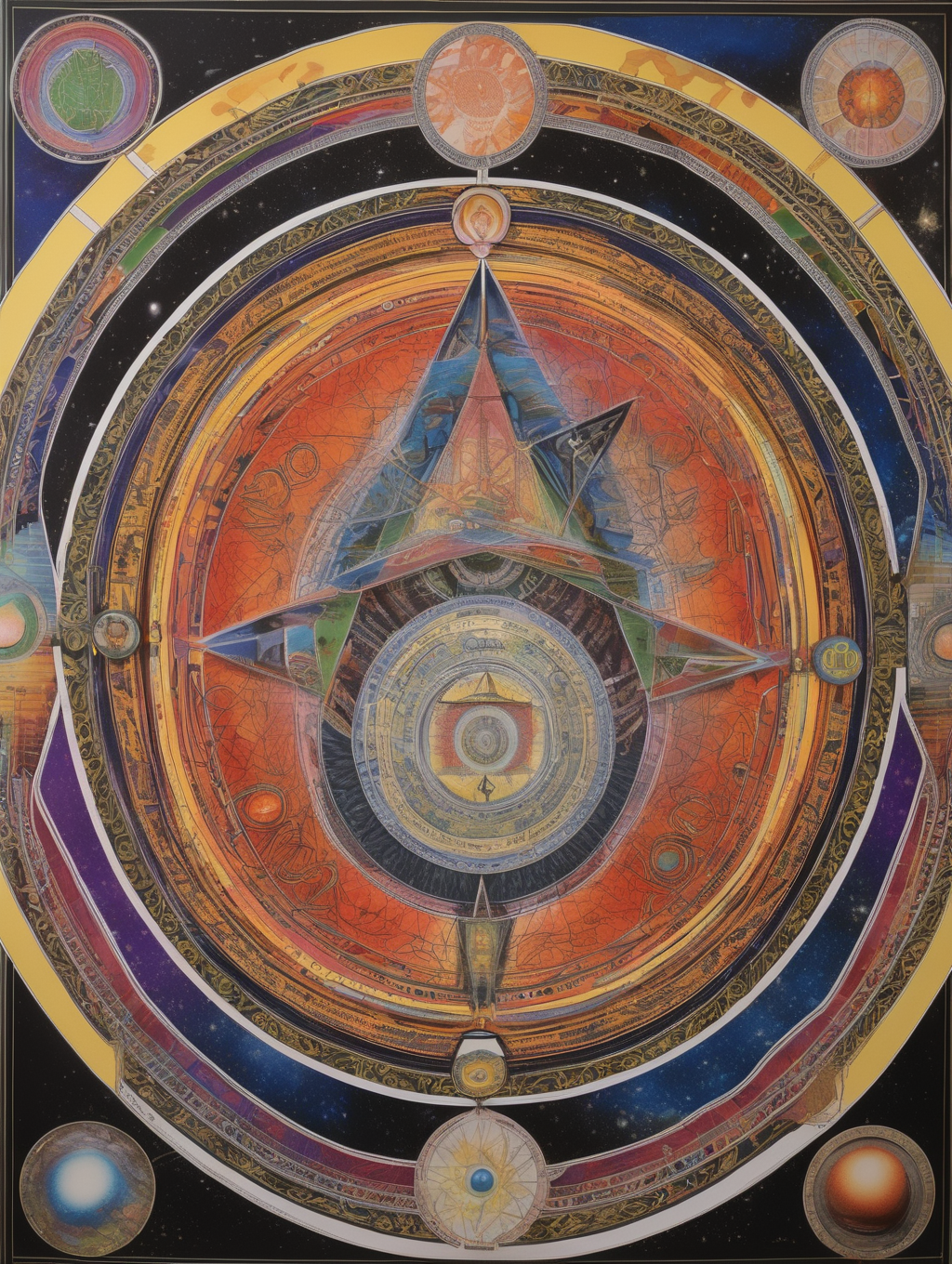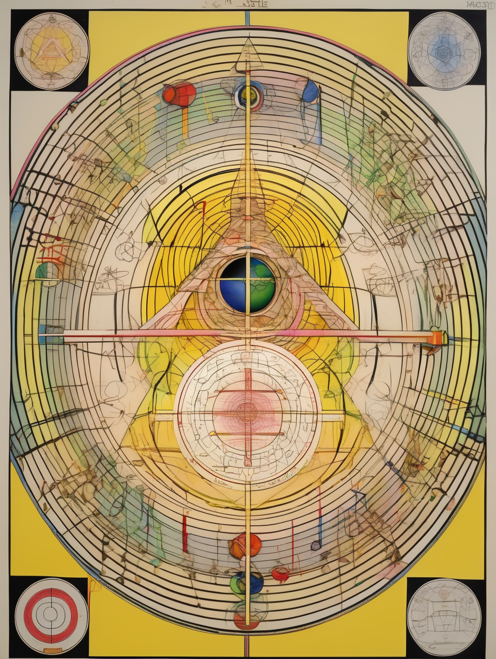 Laffoley's artworks were complex and multidimensional, incorporating intricate diagrams, symbols, and text alongside vibrant and meticulously rendered imagery. His paintings often depicted his visionary experiences, exploring topics such as metaphysics, time travel, cosmology, and the nature of consciousness.
