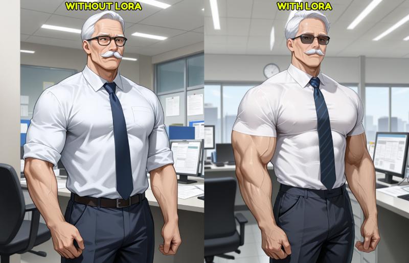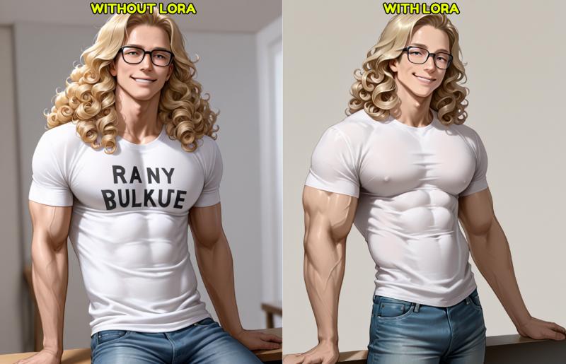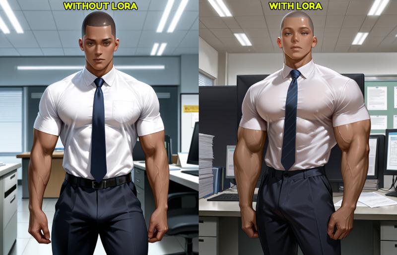 Lora strength Suggestion: 0.5 to 1.5 (depending on how big you want your muscles)