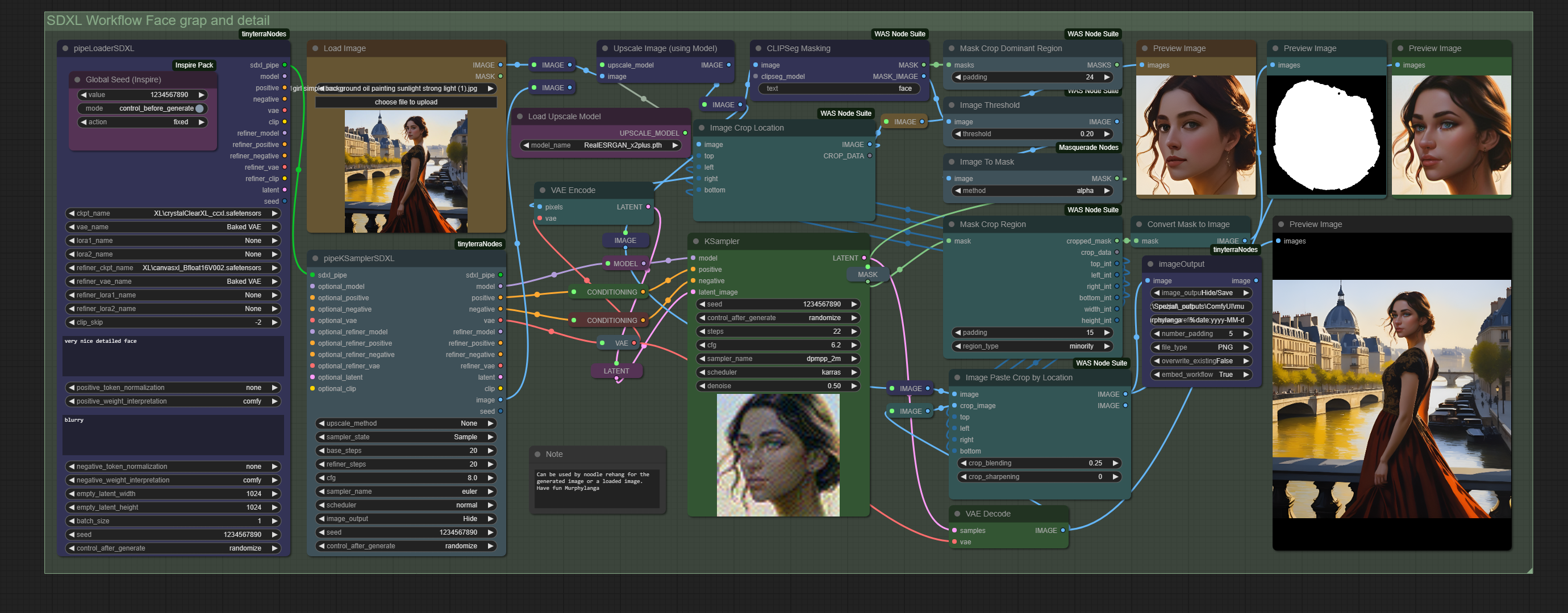 Additionally another workflow with which generate an automatic face detection with face cropping and higher resolution. (other things go too, just change text in the node).