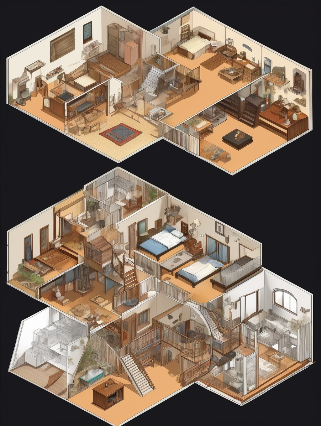 This visual technique provides a unique perspective and can be especially useful when conveying complex information or explaining the functionality of a product or structure. It allows for a comprehensive view of an object's internal and external features in a single image, enhancing clarity and understanding for the viewer.