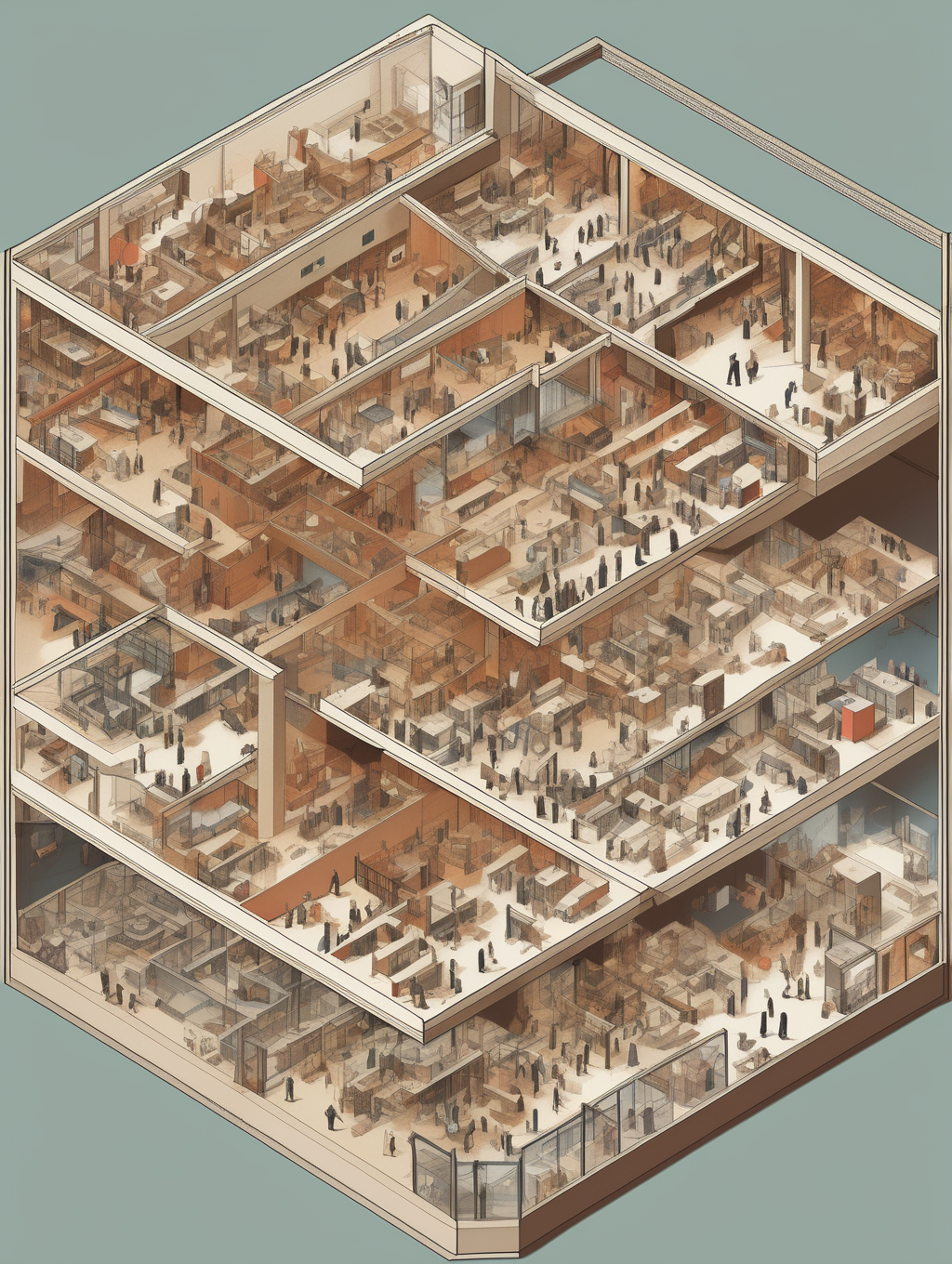 Isometric cutaway is a visual technique used in illustration and design to depict a three-dimensional object or space. It combines the isometric projection method with the concept of a cutaway, allowing viewers to see the internal structure or details of an object or building.
