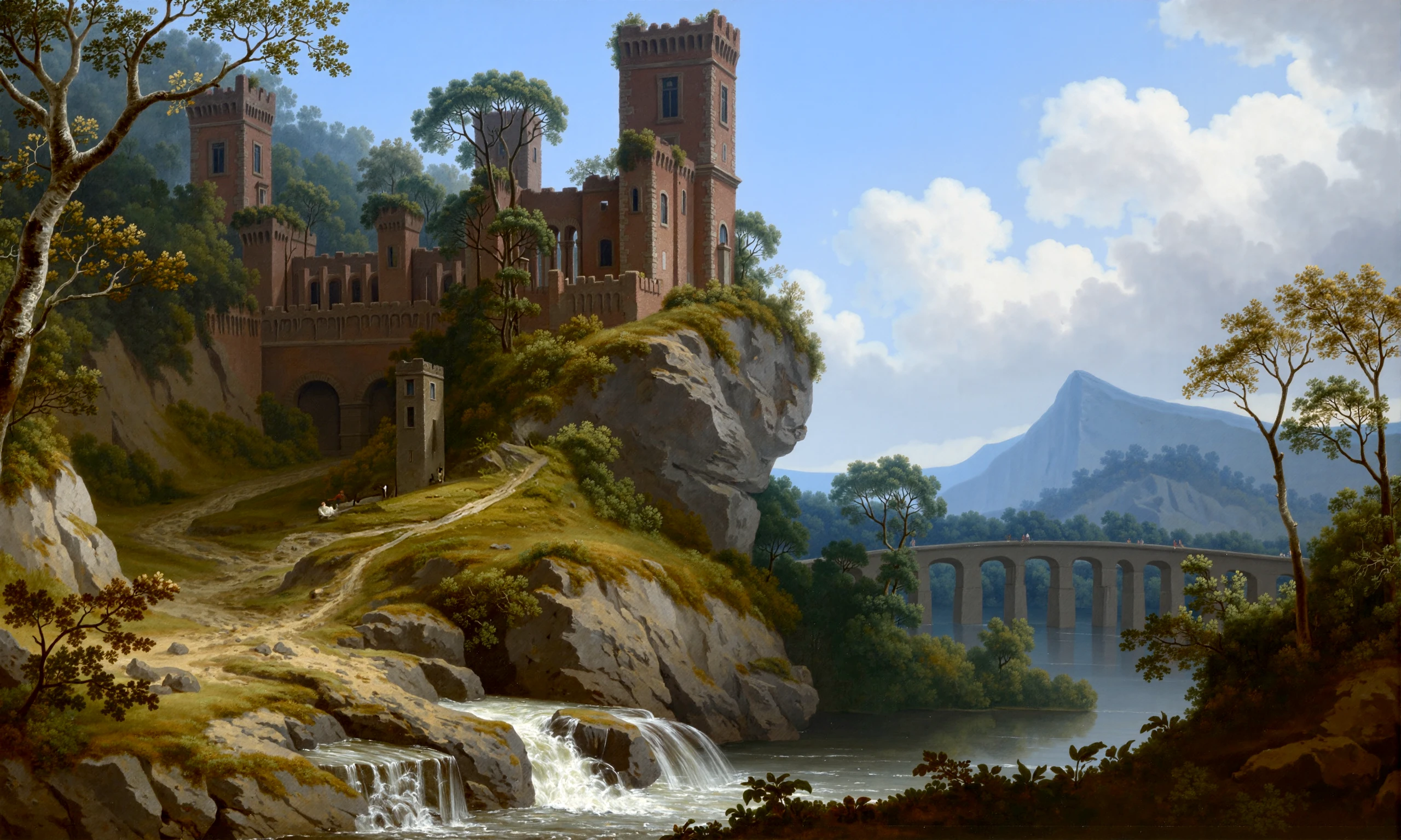 This lora was trained on the landscapes of the Romantic movement. So expect Arcadian landscapes with the occasional shepherd. No trigger but "romantz" was in every caption so it will act as a trigger. It likes castles, waterfalls dramatic mountains and above all trees!