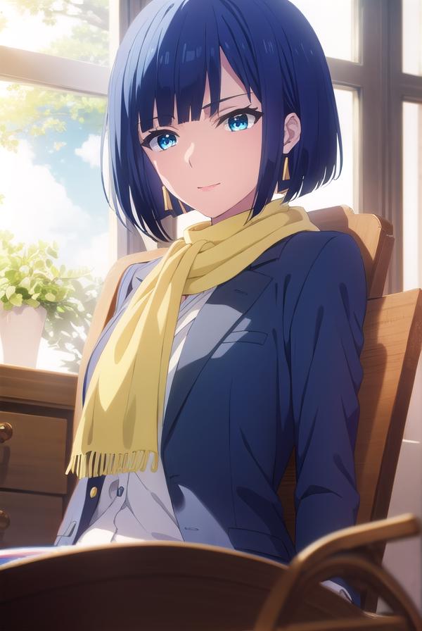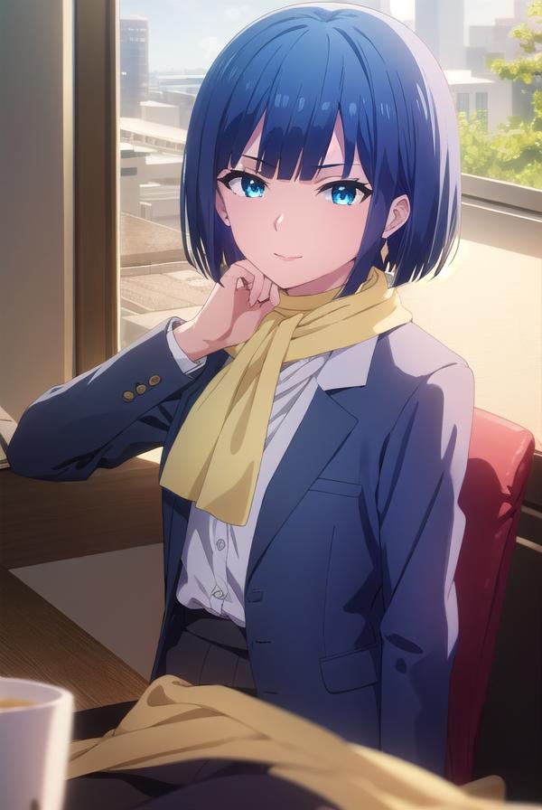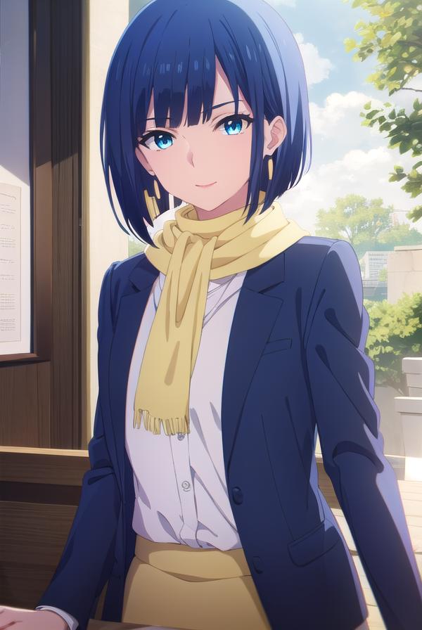 akino yuugiri, short hair, bangs, blue eyes, blue hair, makeup, lipstick,