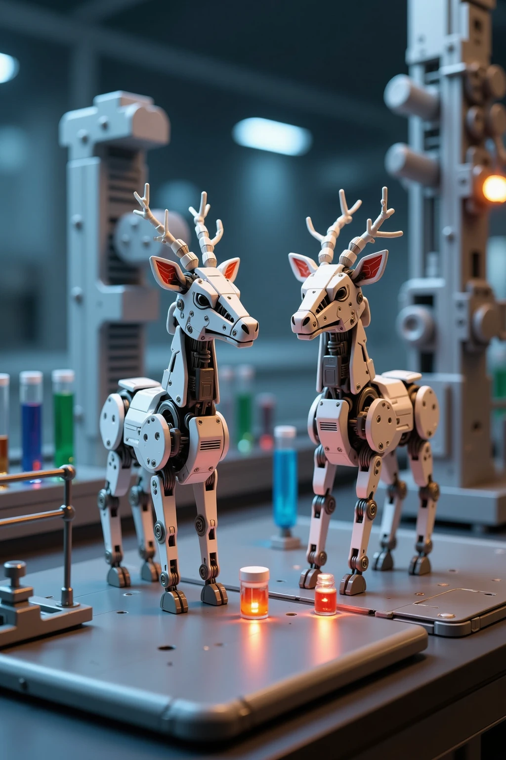 Mechanical zodiac animal models, inside a high - security research lab, surrounded by scientific equipment, test tubes glowing with mysterious liquids.