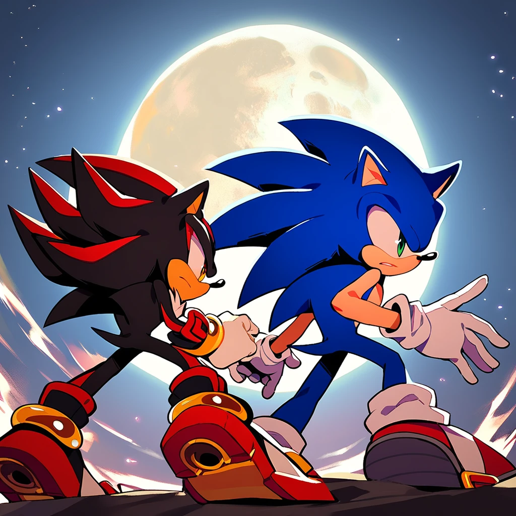 Sonic X Shadow.Another model in attempt to get a "duo" character Lora. Some of you would be happy (or upset) to know that this model was trained with practically no shipping pics. Mostly.