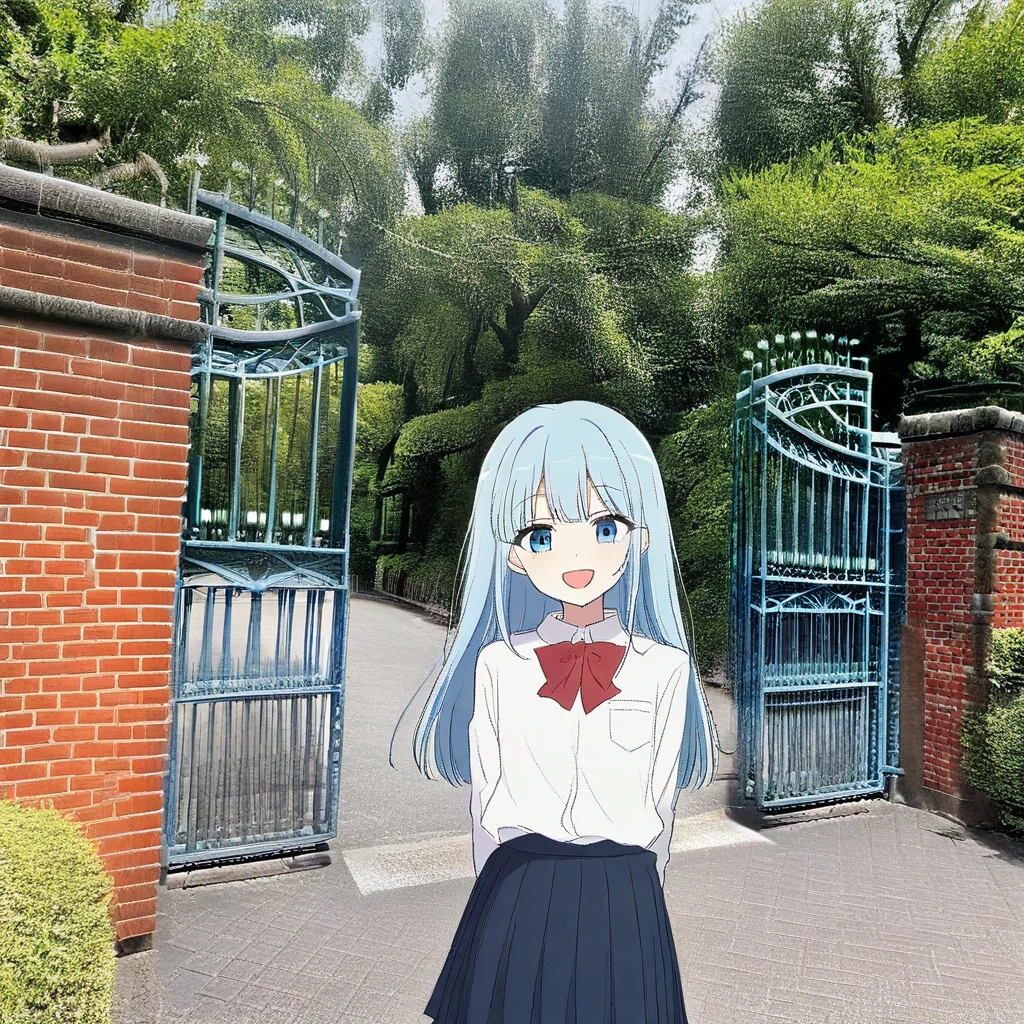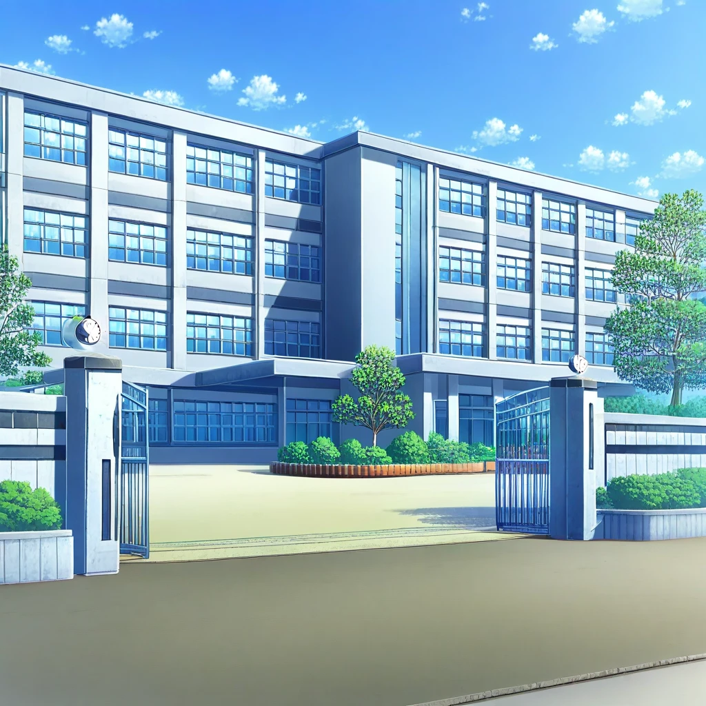 fence,railway,tree,bricks,red bricks wall,photo background, school white building,wall,crock,lamppost,night,gate,outdoors,Description