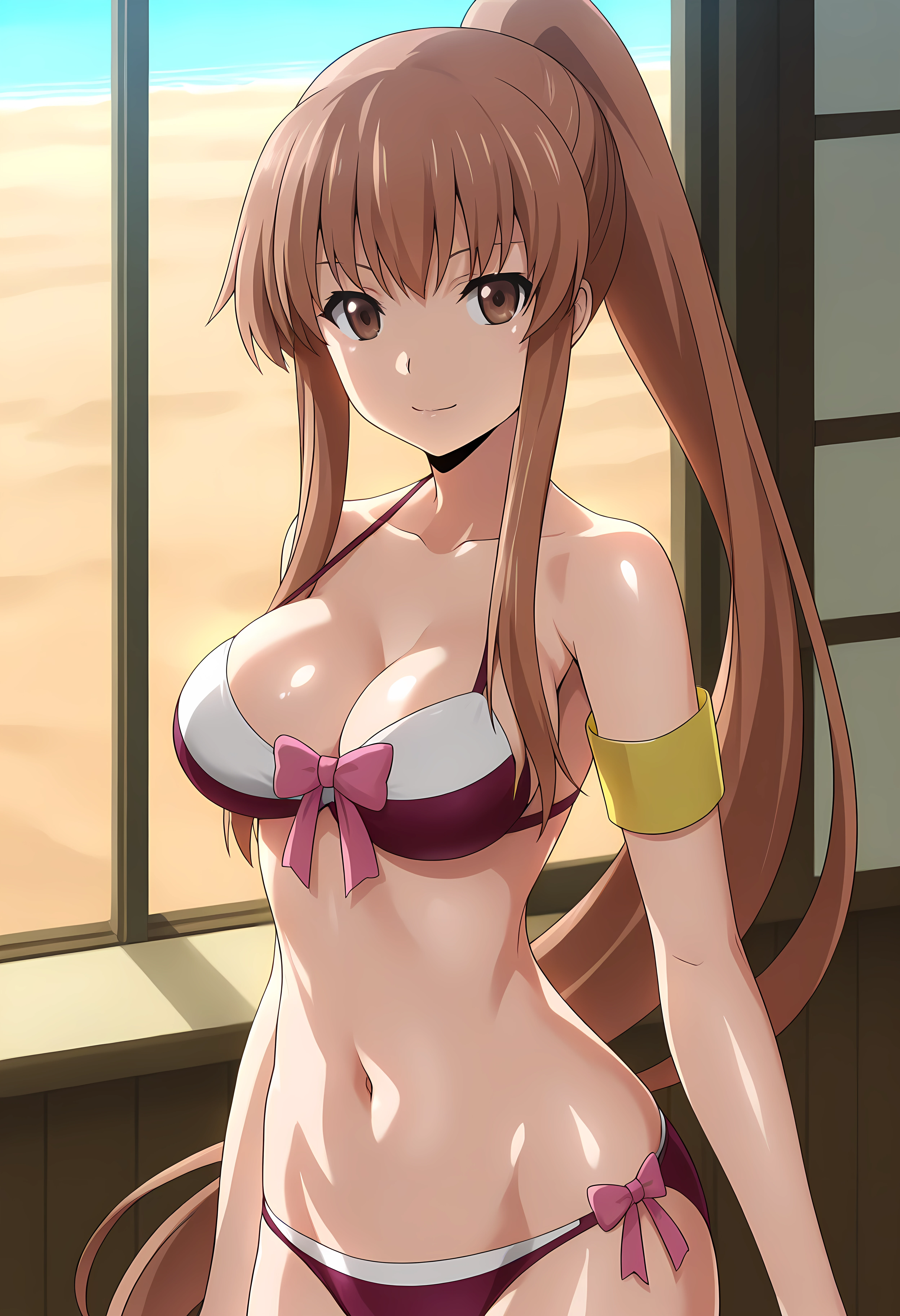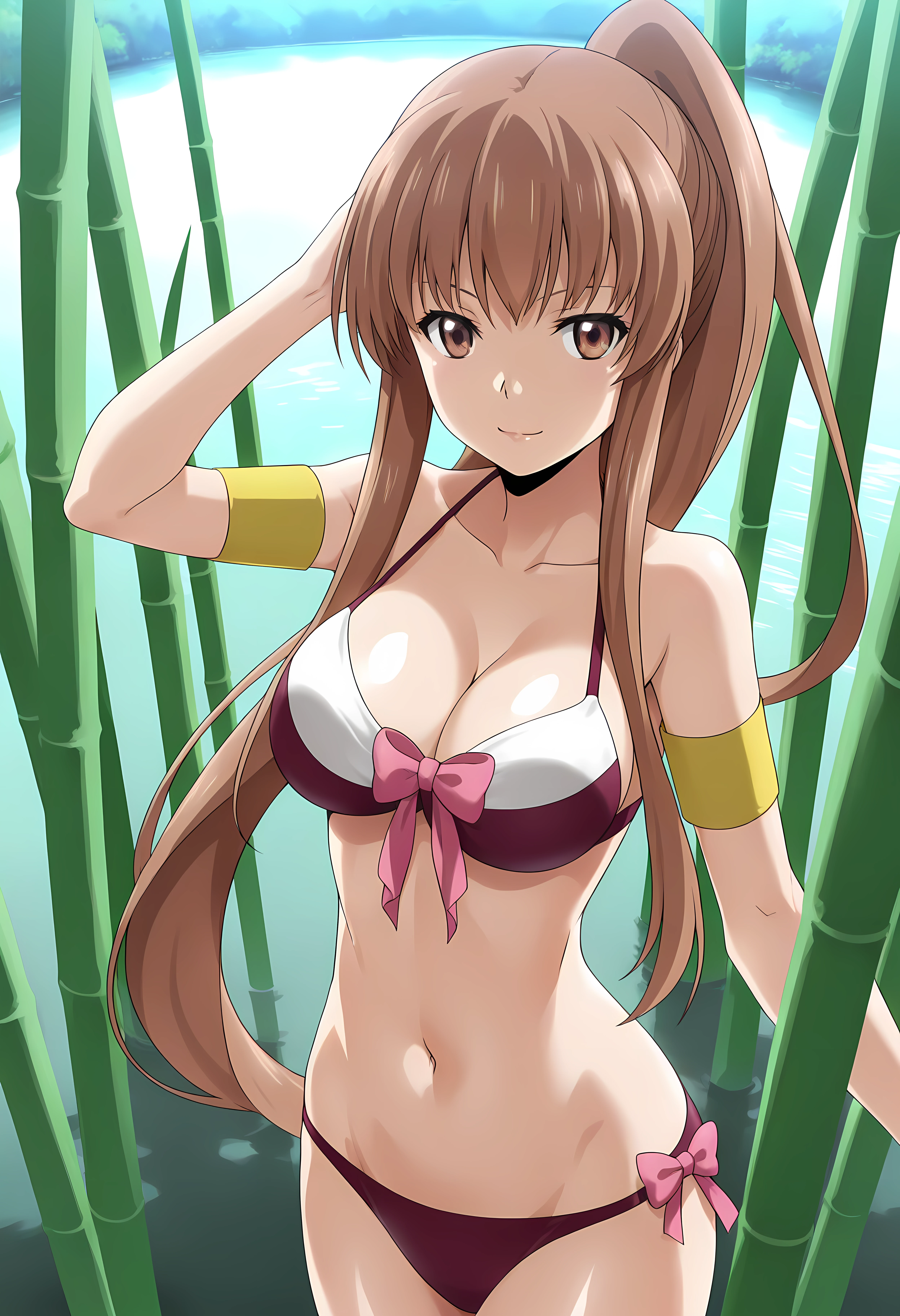 Outfit 1 → swimsuit, bikini, cleavage, navel, armband, bow,