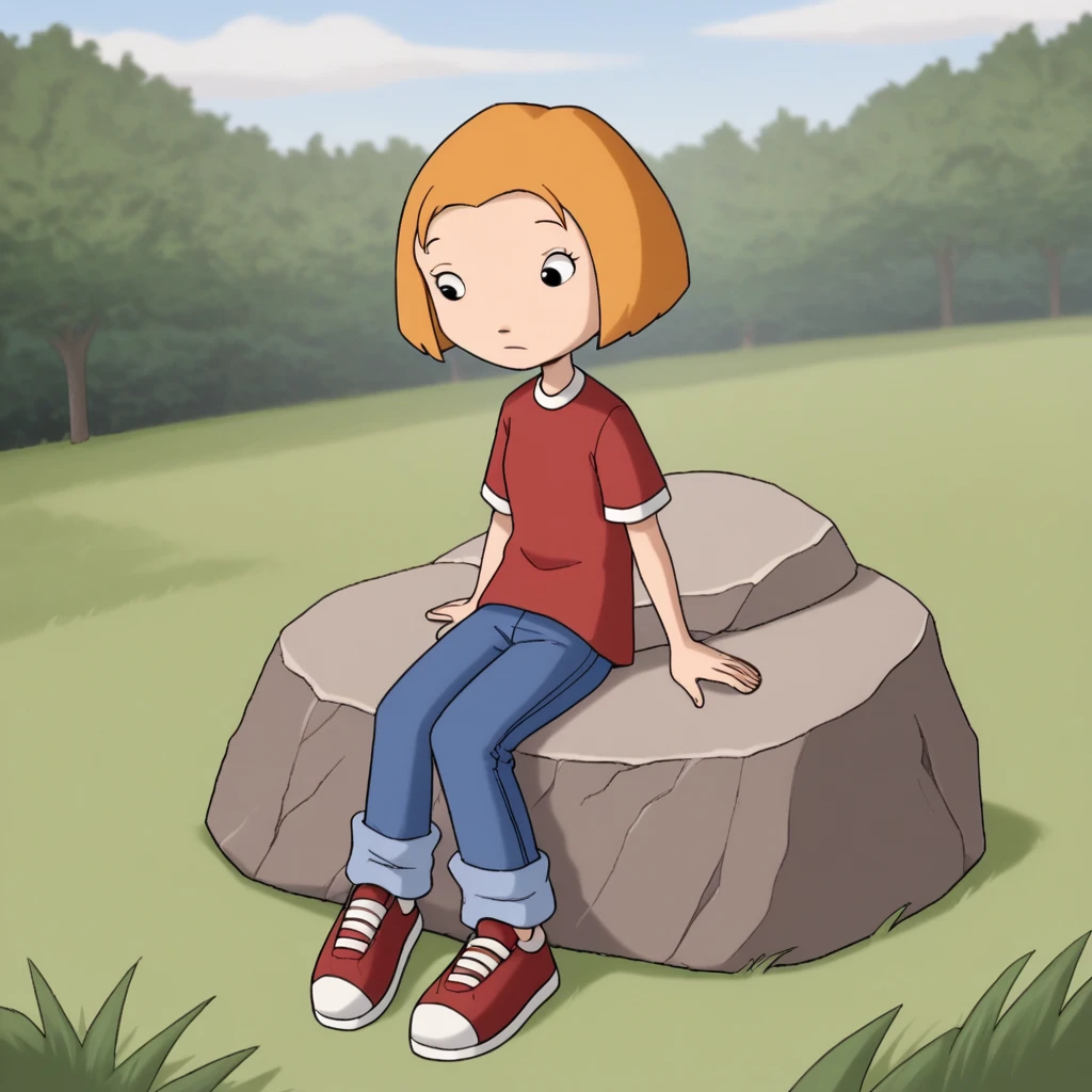 lormcquarrie, 1girl, solo, blonde hair, short hair, black eyes,