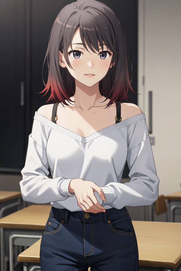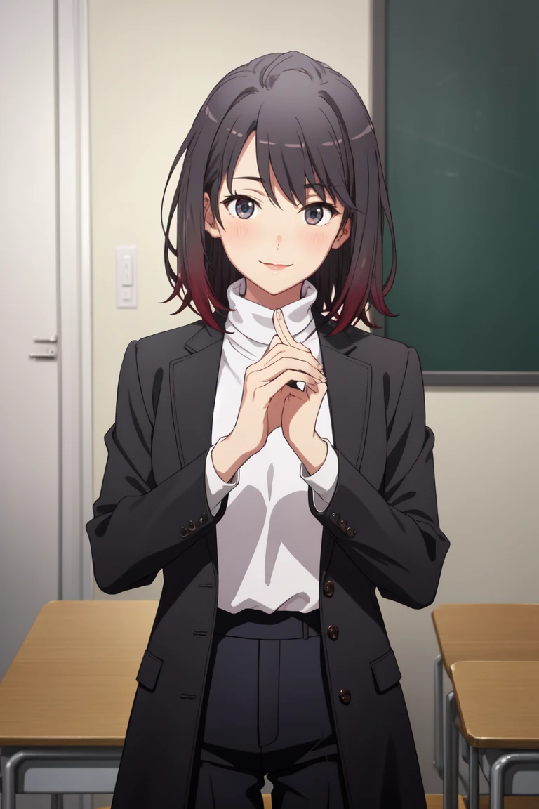 Yukinoshita Haruno <lora:Yukinoshita_Haruno:0.7>// optional:: black hair, (gradient hair:1.25), short hair, black eyes