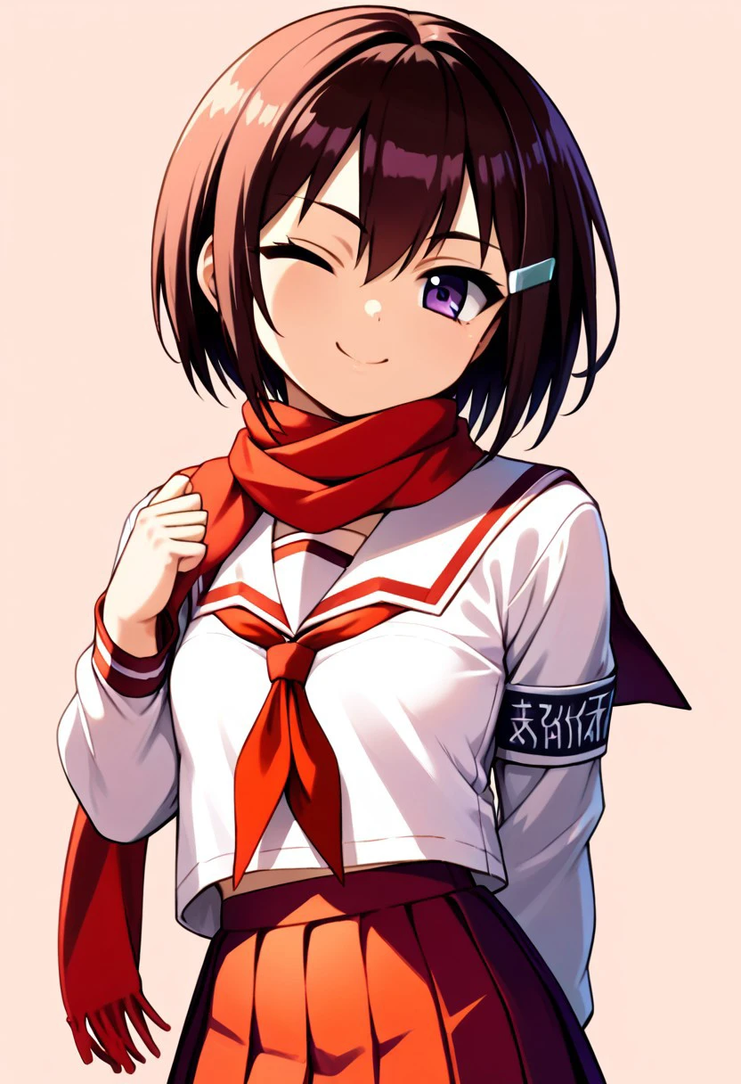 skirt, pleated skirt, serafuku, red skirt, shirt, white shirt, sailor collar, white sailor collar, long sleeves, red scarf,