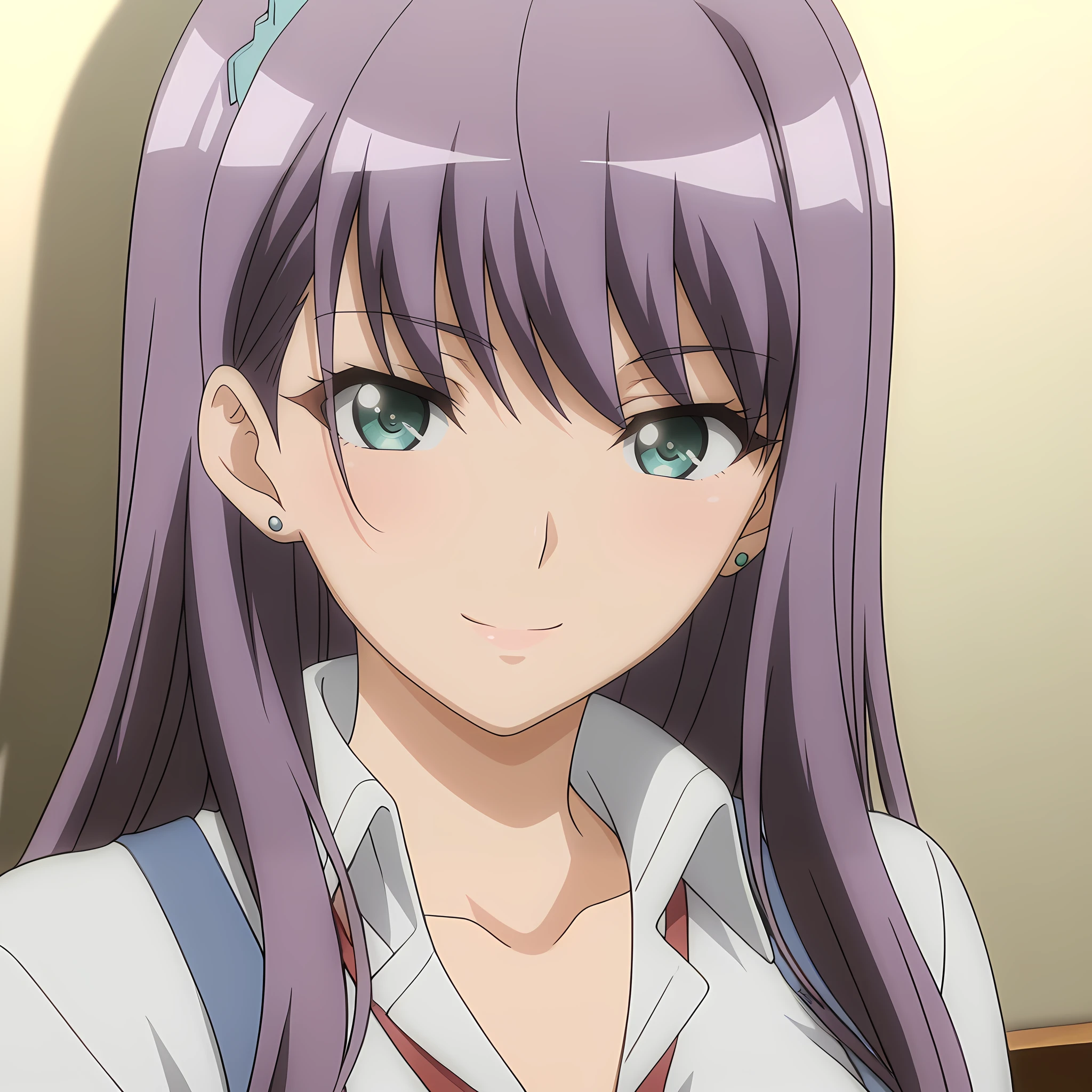 ayano_fukawa_yabaifukushuyamisite, 1girl, long hair, large breasts, purple hair, green eyes, anime coloring