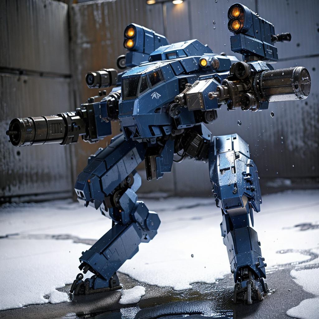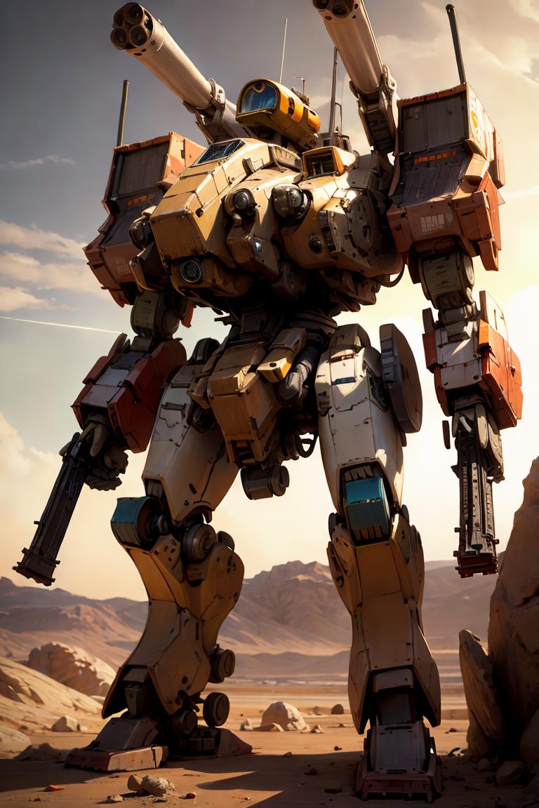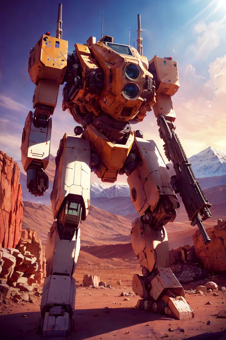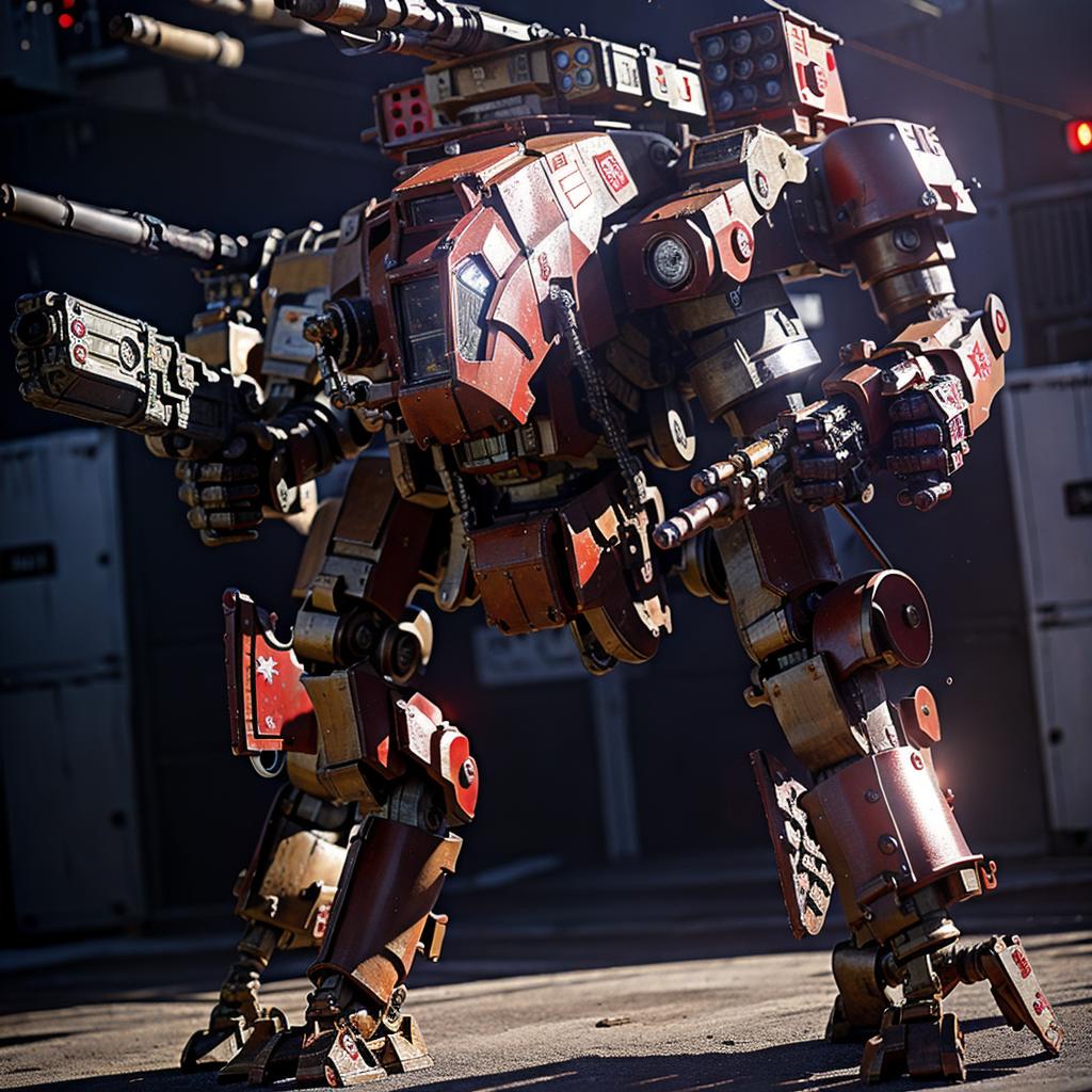 Most of the bipedal mecha LoRAs here were of the fantasy genre, appearing excessively pristine for warfare weaponry. Therefore, I trained a LoRA model based on majicMIX realistic v6, hoping to make the generated mechas more rugged. I used weight 1.0 for this LoRA.