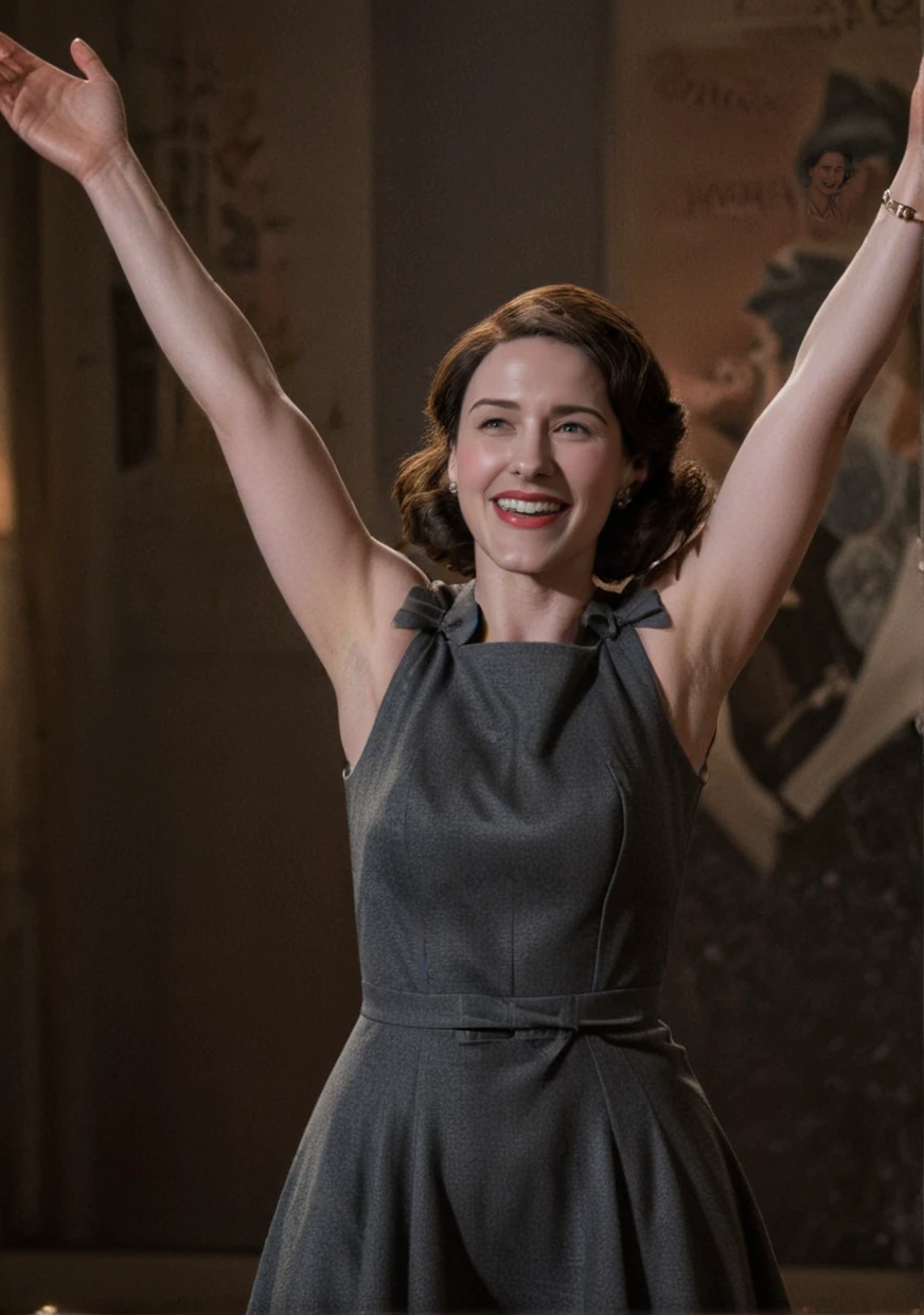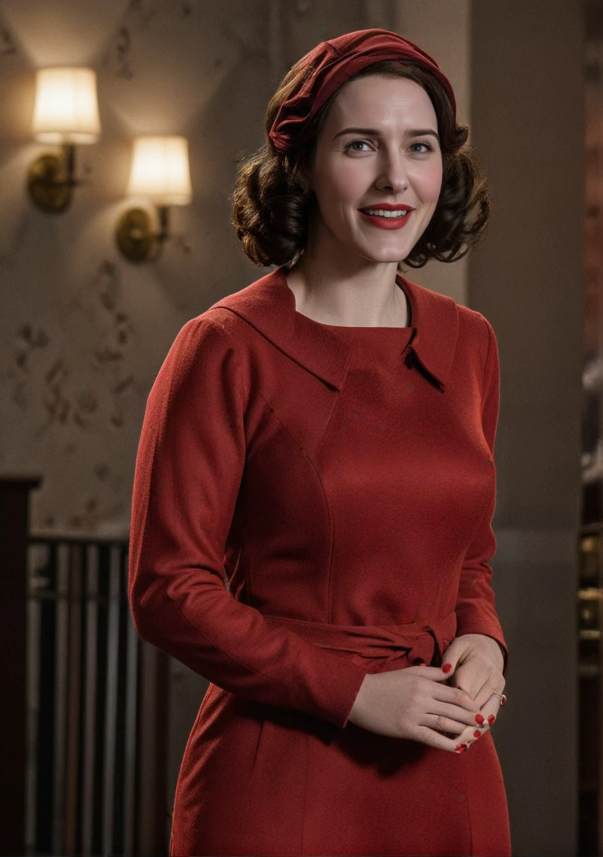 Rachel Brosnahan as Miriam "Midge" Maisel (née Weissman), an upper-middle class Jewish American housewife and mother who discovers her flair for stand-up comedy after husband Joel abruptly leaves her. Fashion-obsessed and hyper-competent, Midge is hired as a make-up counter girl at B. Altman and starts performing stand-up comedy in clubs across New York, eventually becoming a world-famous comedian.