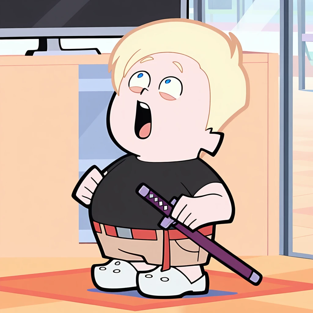 1. psgjb, 1boy, blonde hair, blue eyes, chubby, male focus, chibi, constricted pupils:0.5, orange_squinting_eyes, solo,