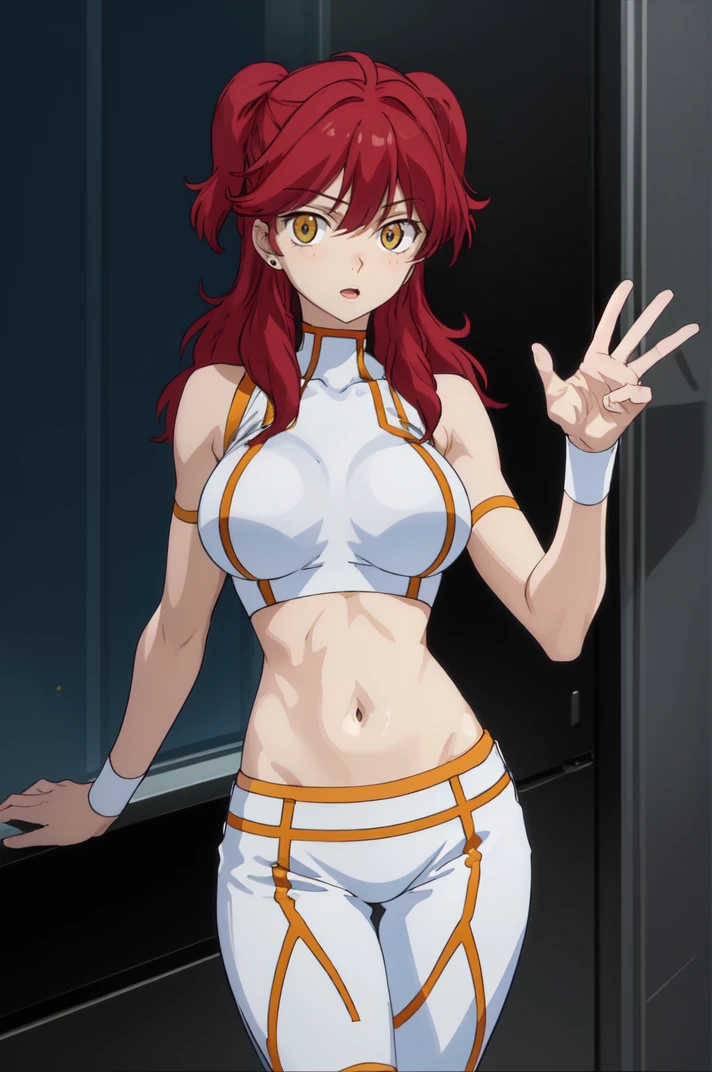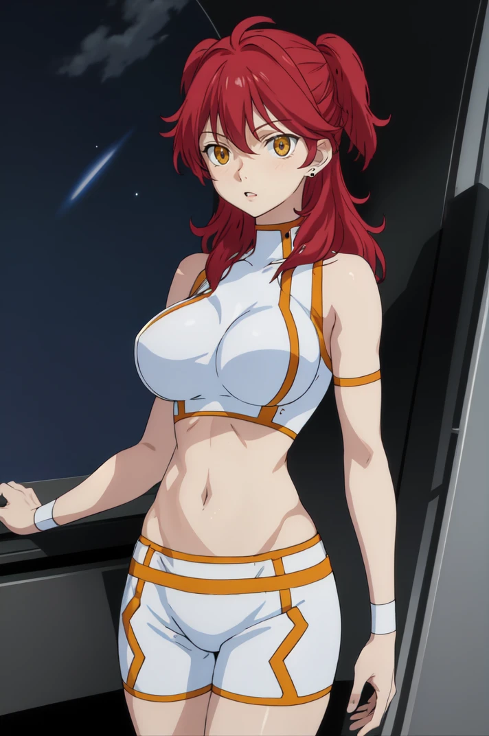 midriff, sleeveless, navel, crop top, abs, white shorts, skin tight