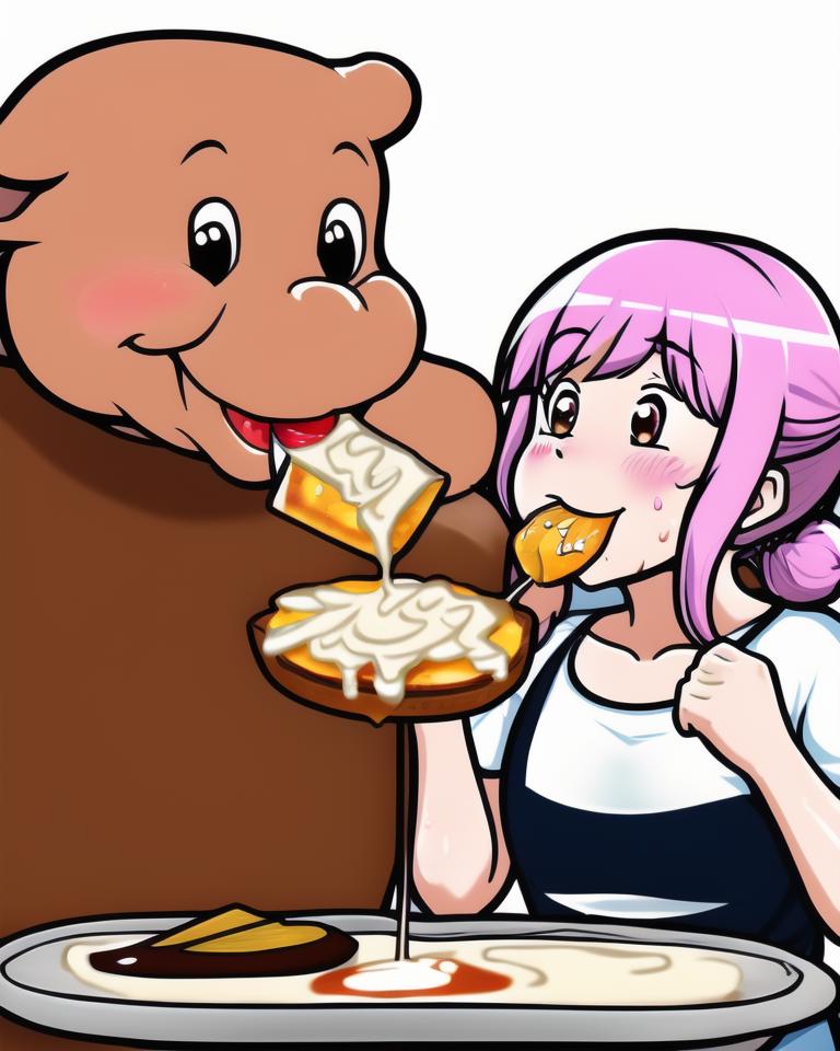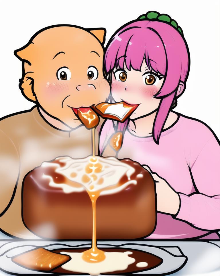Two creatures eating white and sticky protein.
