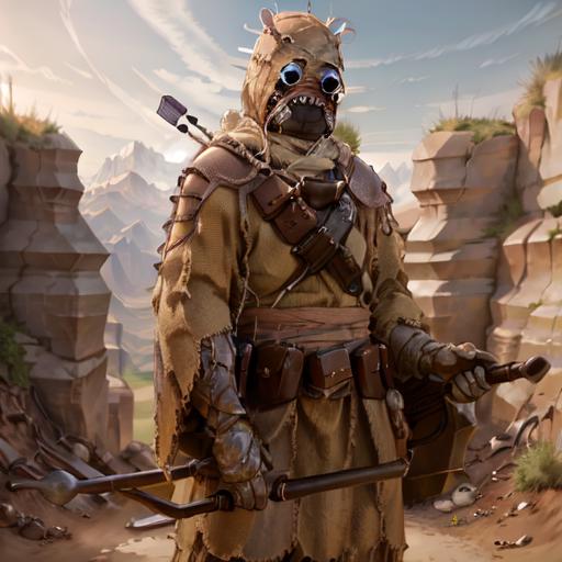Tusken RaiderV1.0From my personal experience, the best settings are the following:LoRA Strength: 0.6-0.7Upscaler: SwinIR_4x .35 DenoisingSampling Method: DPM++ SDE Karras 30 Steps