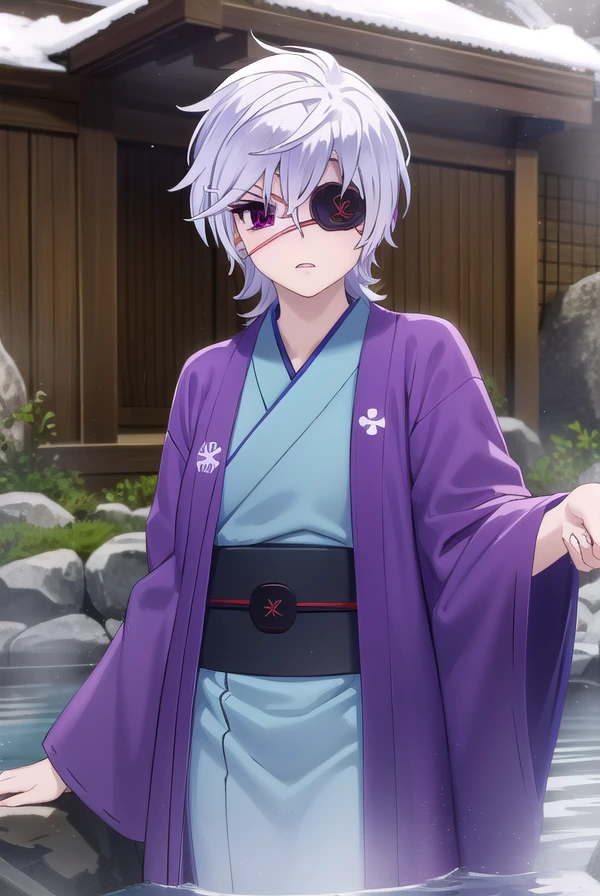 oboro shintou, (purple eyes:1.1), white hair, (eyepatch:1.5),