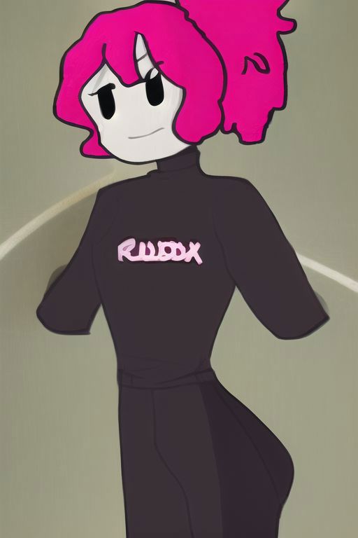 roblox guest girl, pink hair, ponytail, black outfit, black eyes
