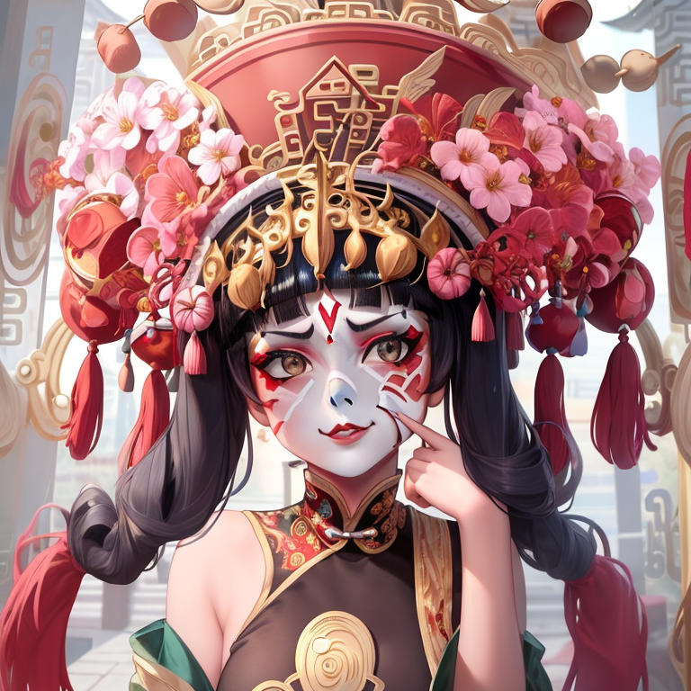 It is suggested to add the keyword "chinese_\(facialmakeup\)". Recommended models are Chilloutmix and Anything.