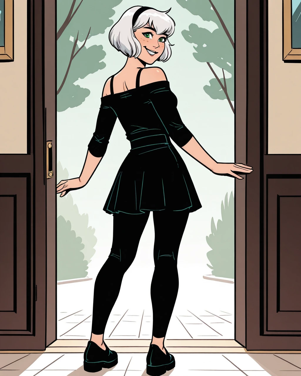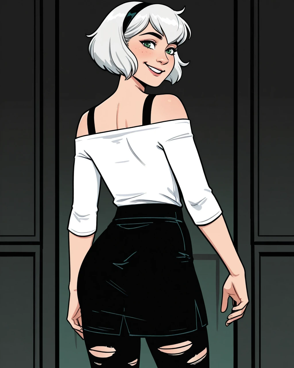 Triggers: sabrinaspellman, short hair, hairband, silver hair, green eyes