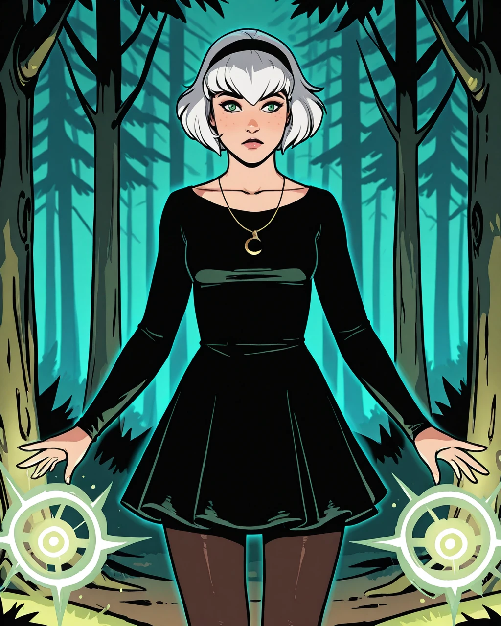 By request, Sabrina Spellman from Archie Comics. This was trained mostly on the 2019-2020 run by Kelly Thompson and Veronica Fish.