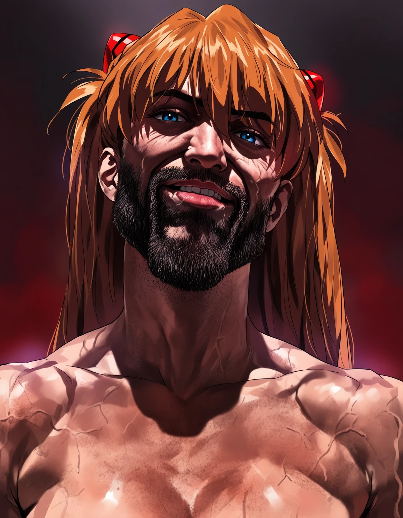 The booru tags for gigachad \(meme\) etc apply, and I added "the chad smile", "the serious gigachad", and "sitting gigachad lean" as additional tags to prompt their respective poses/expressions.