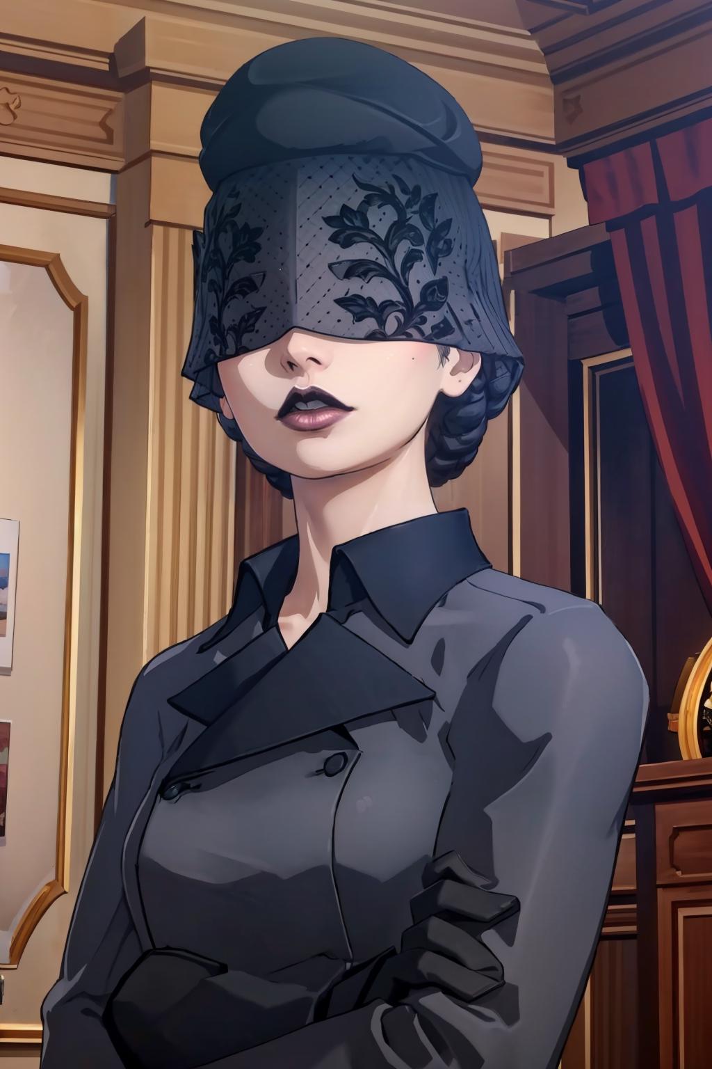A mysterious lady in a funeral garb who assists Louis Cyphre and acts as his mouthpiece.