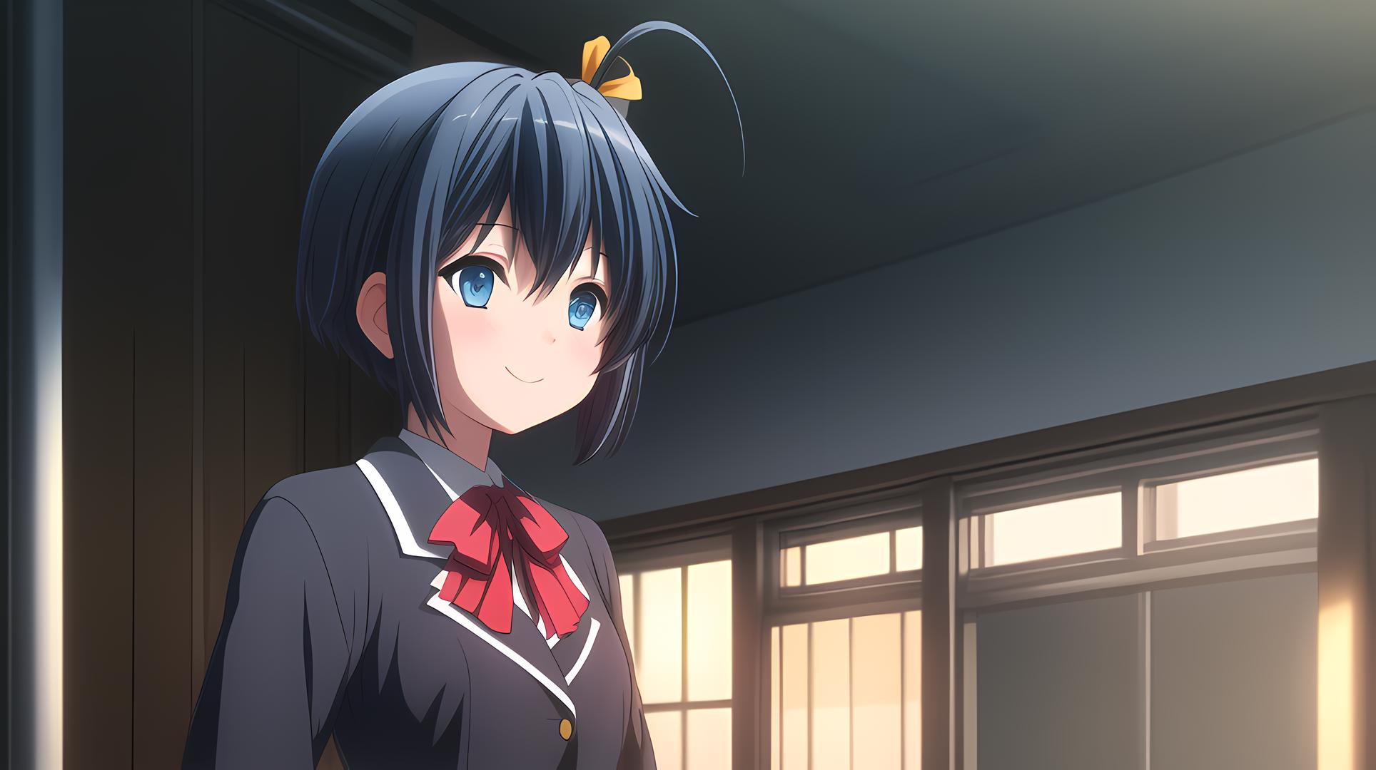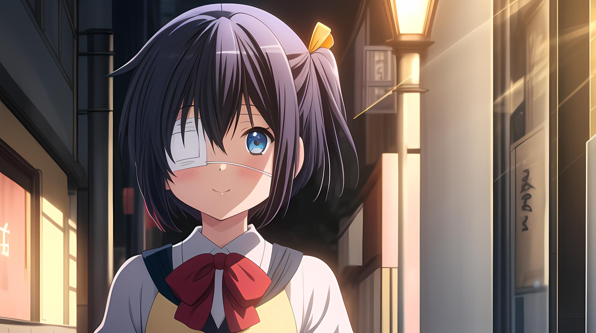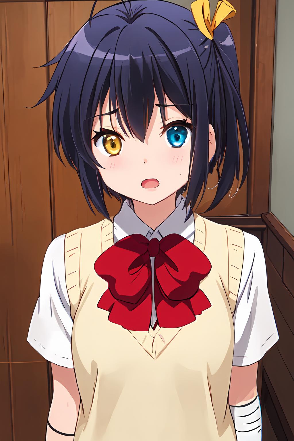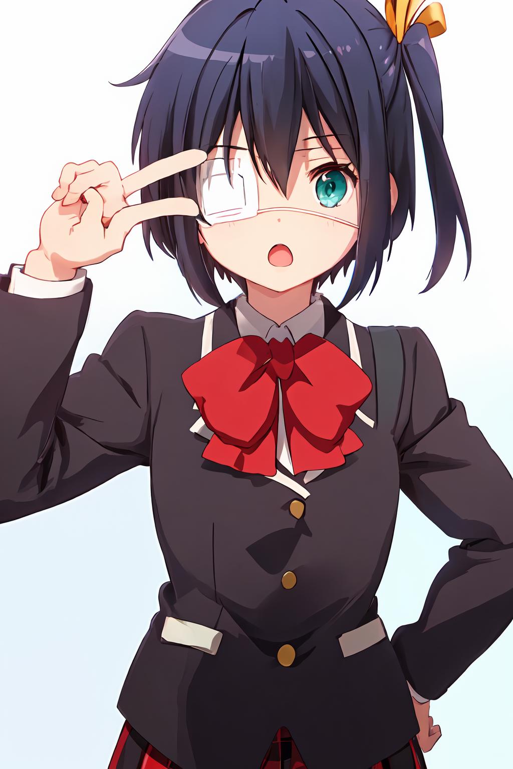 Eyepatch off: ph rikka, 1girl, yellow eyes, no eyepatch, eyepatch removed