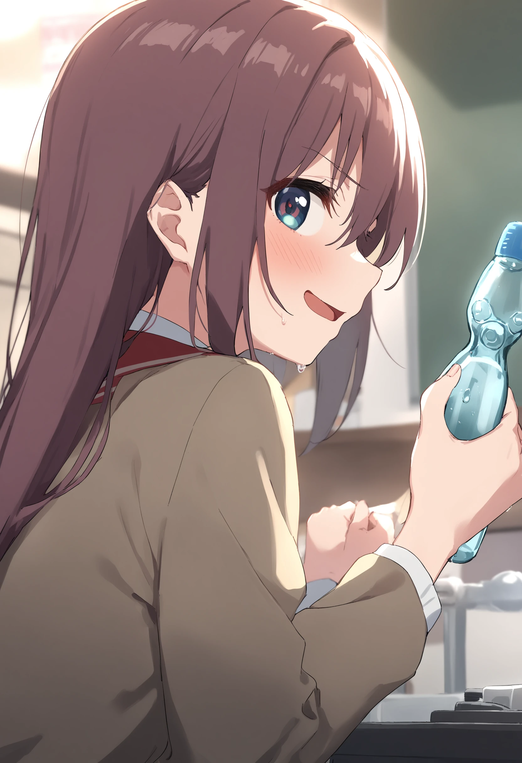 The original blue container can be produced by the prompt alone, but it clearly looks like a plastic bottle containing a sports drink, so LoRA is used to correct it.