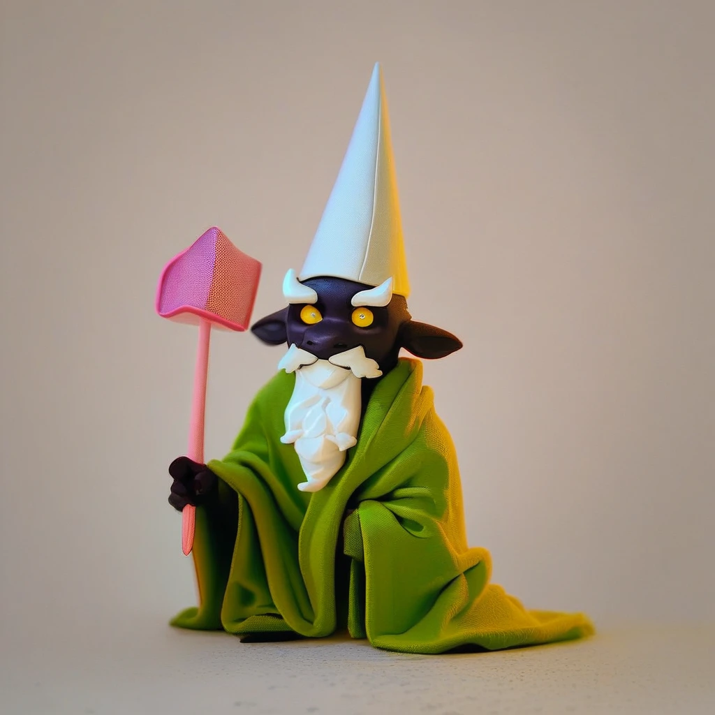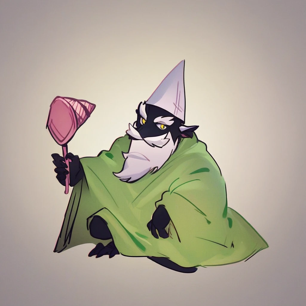 mikus-concept, crawly green gnome, green robe, cone hat, white beard