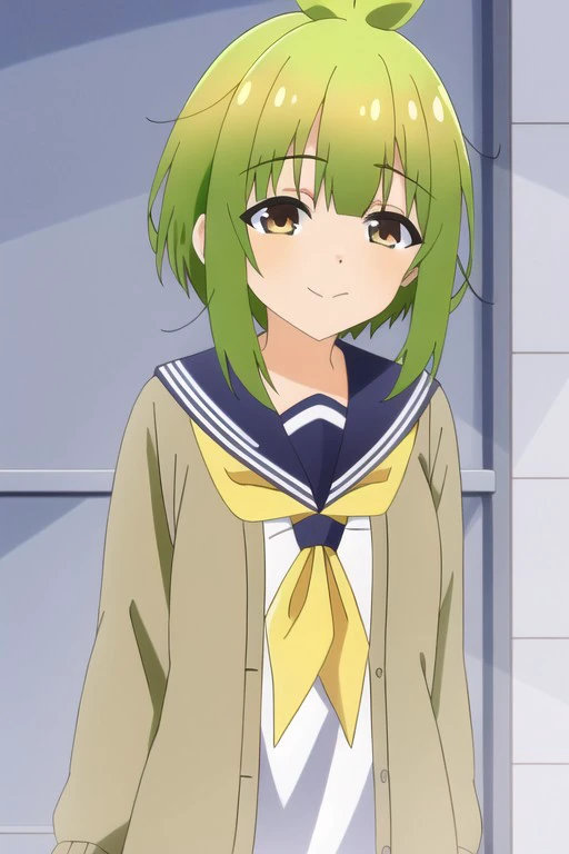 Trigger Words: bashame meme, green hair, brown eyes, short hair