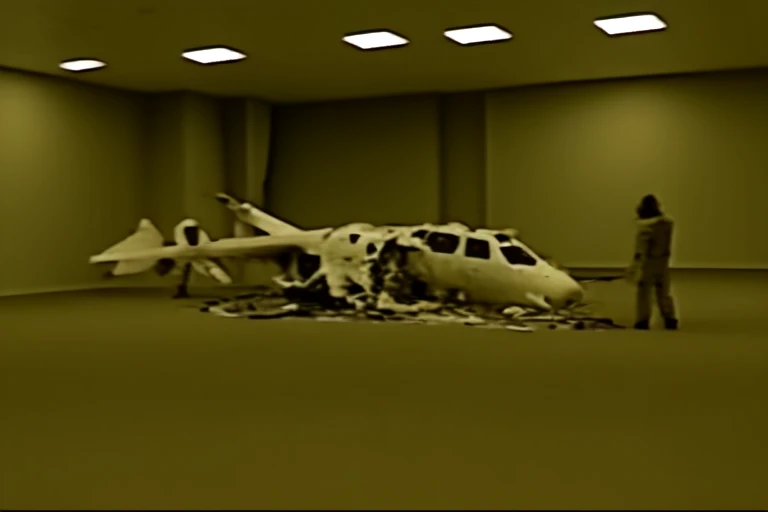 This creates uncanny liminal spaces in the yellowish glitchy VHS style of The Backrooms Level 0 "The Lobby", trained with a bunch of of screenshots from backrooms videos found on youtube.