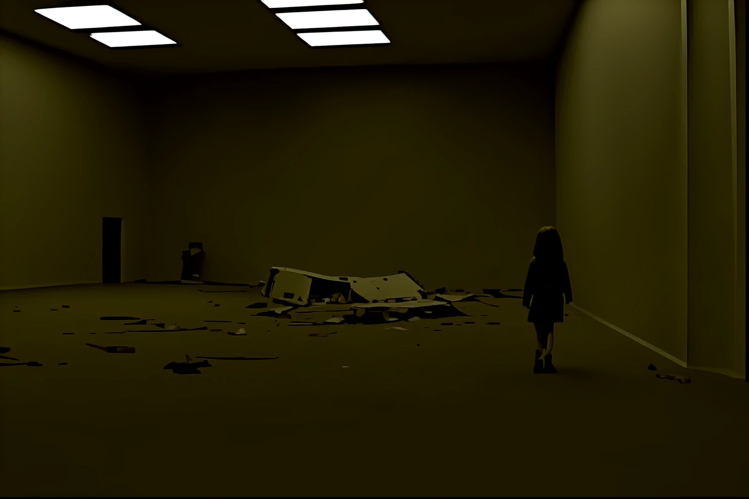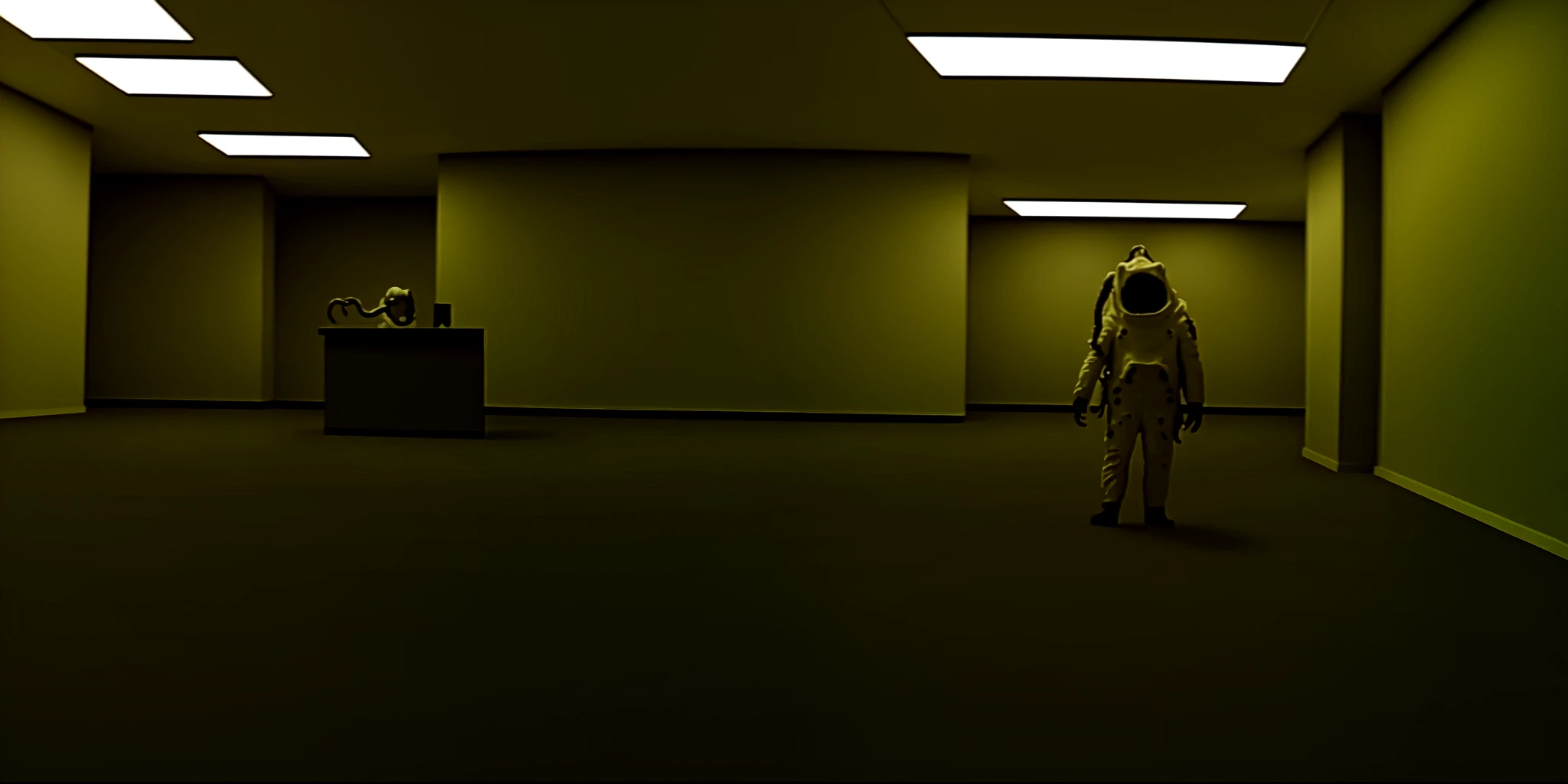 Use prompts like backrooms, room, liminal space to create the architecture.