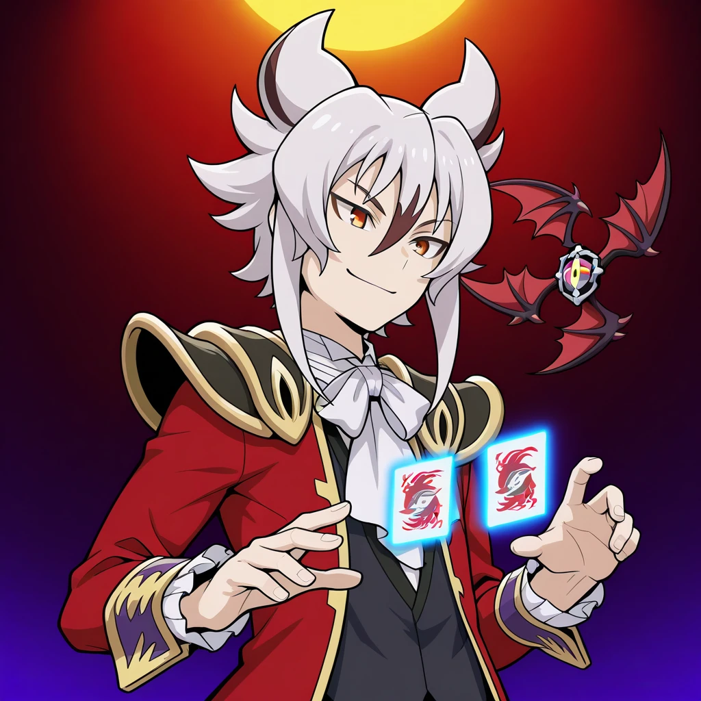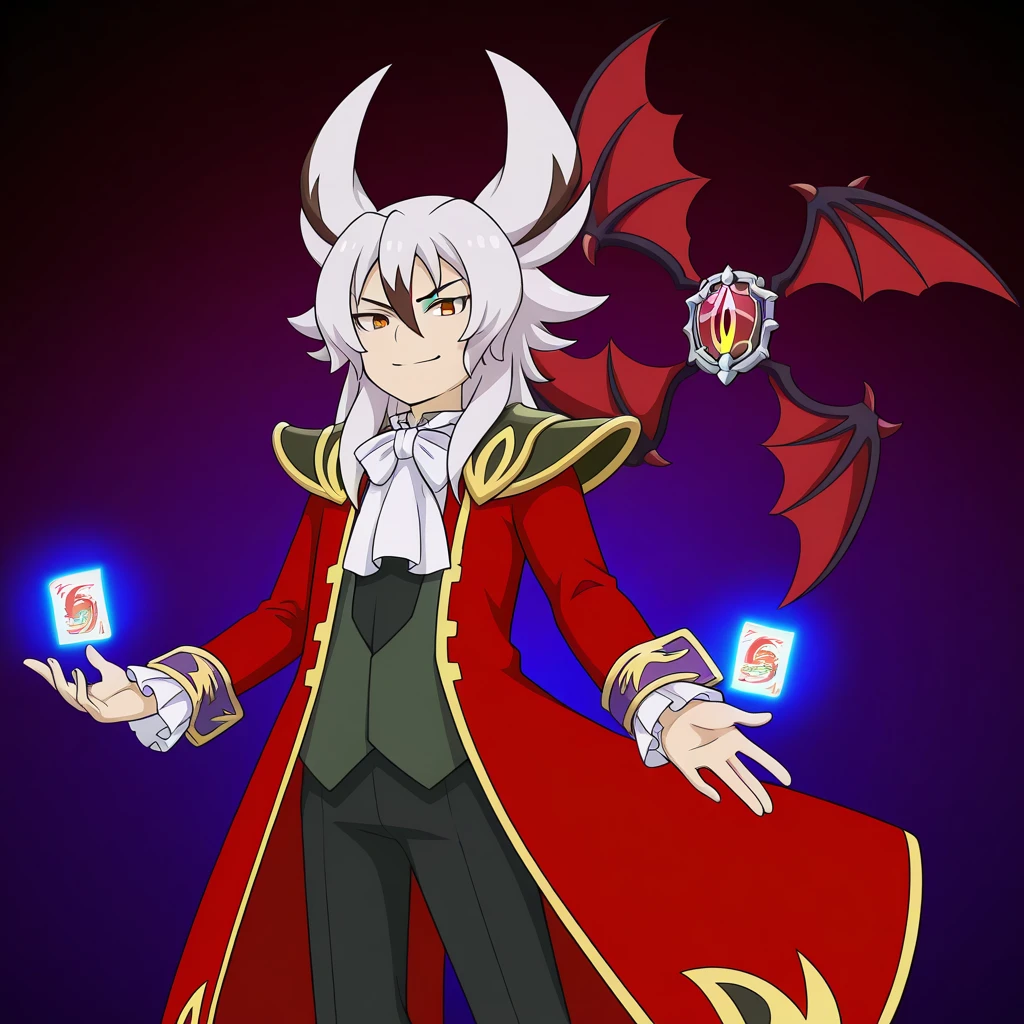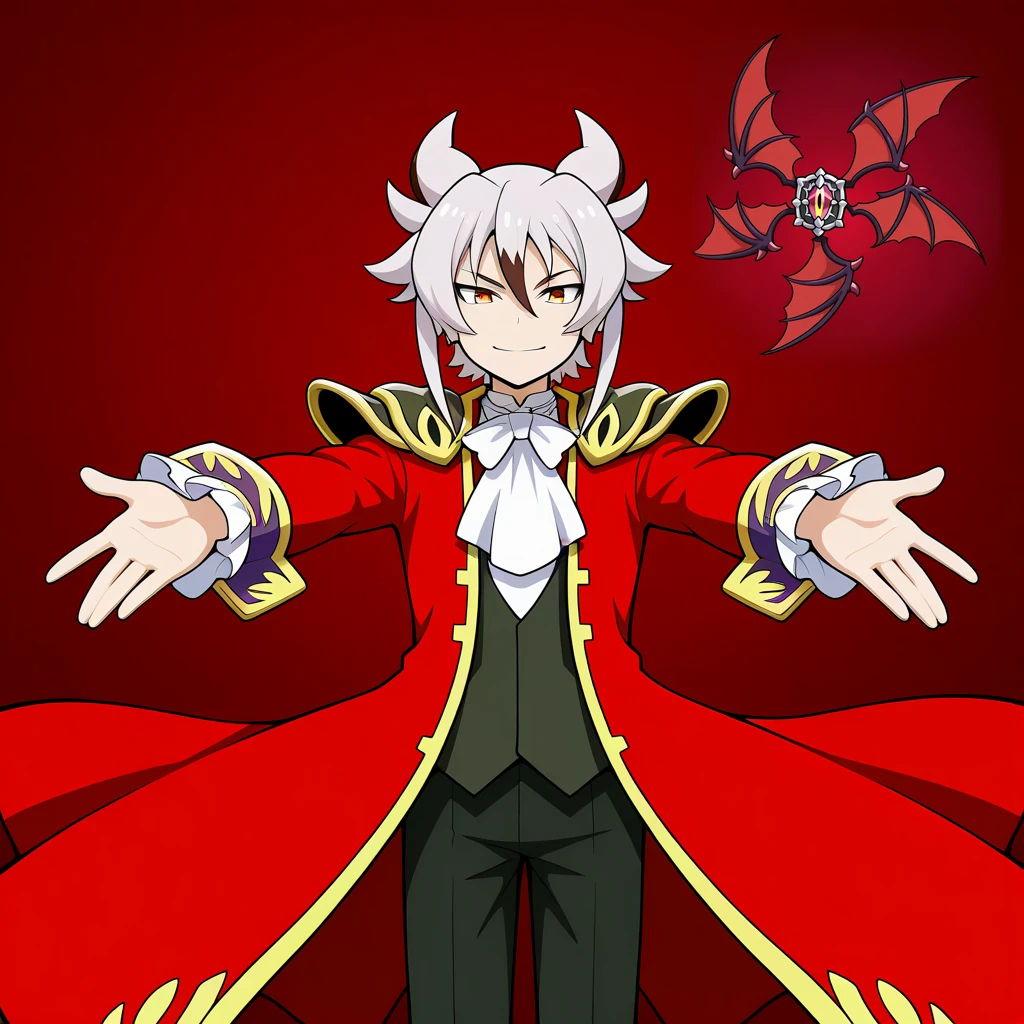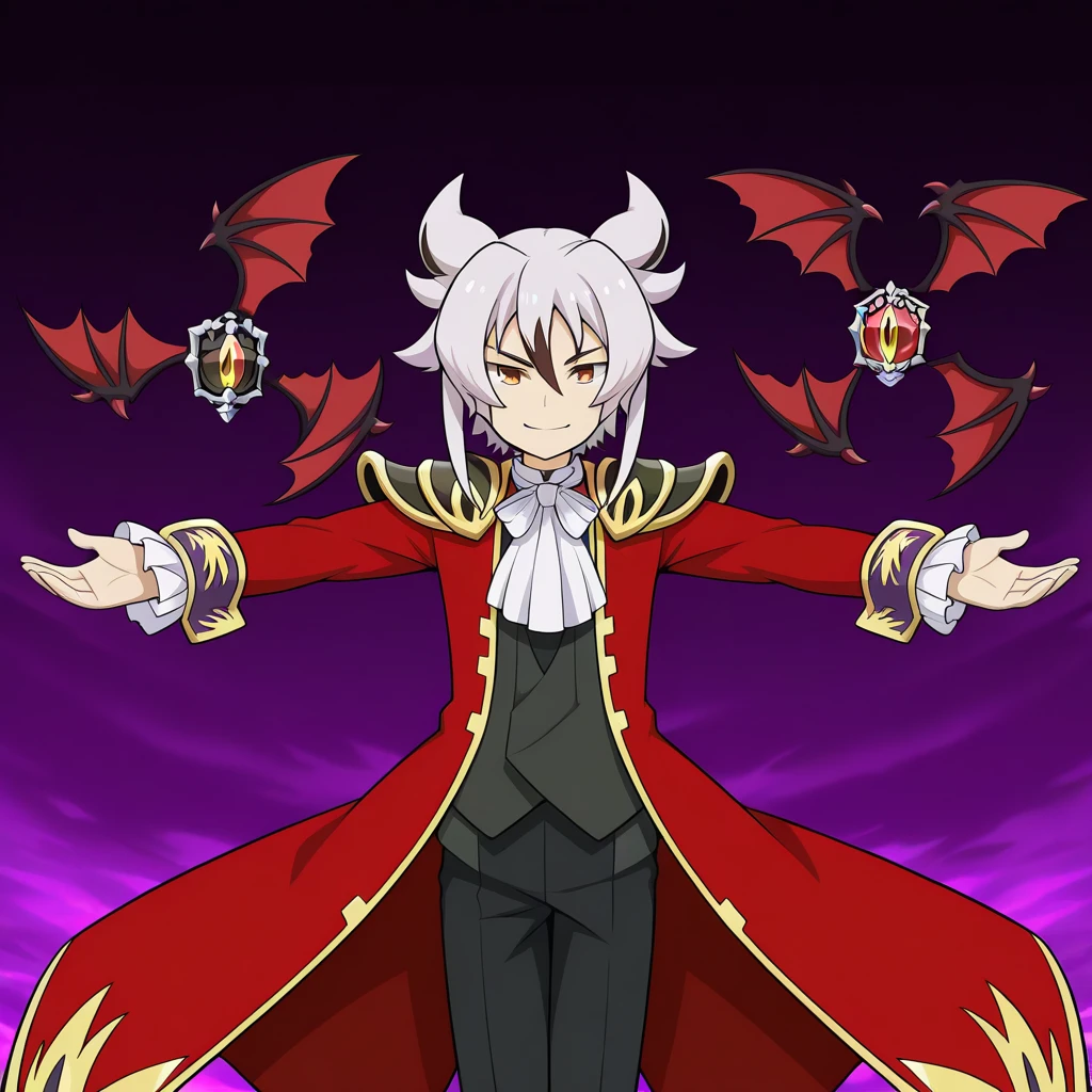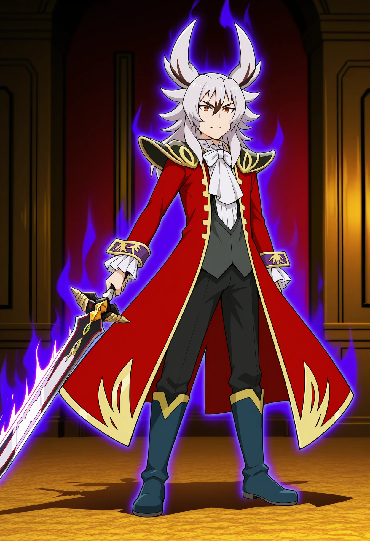 kyoya gaen,coat,red coat,shoulder armor,armor,ascot,bowtie,waistcoat,black pants,knee boots