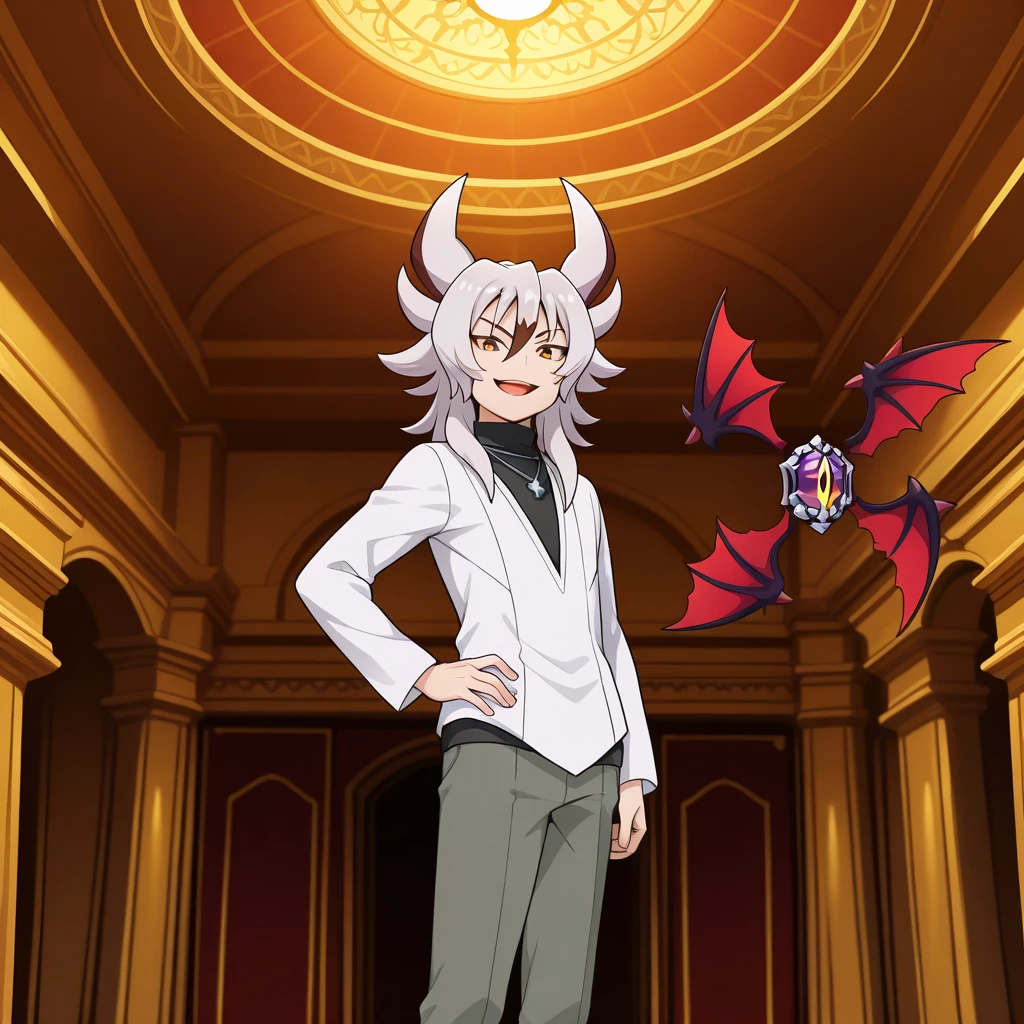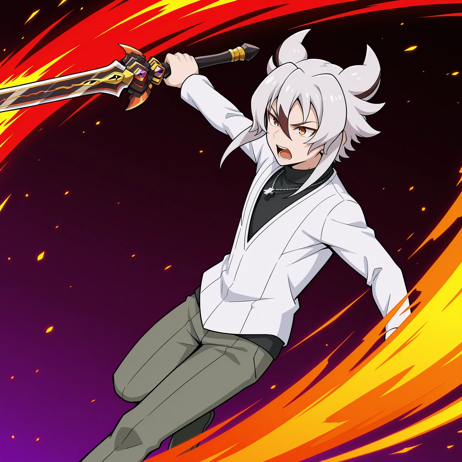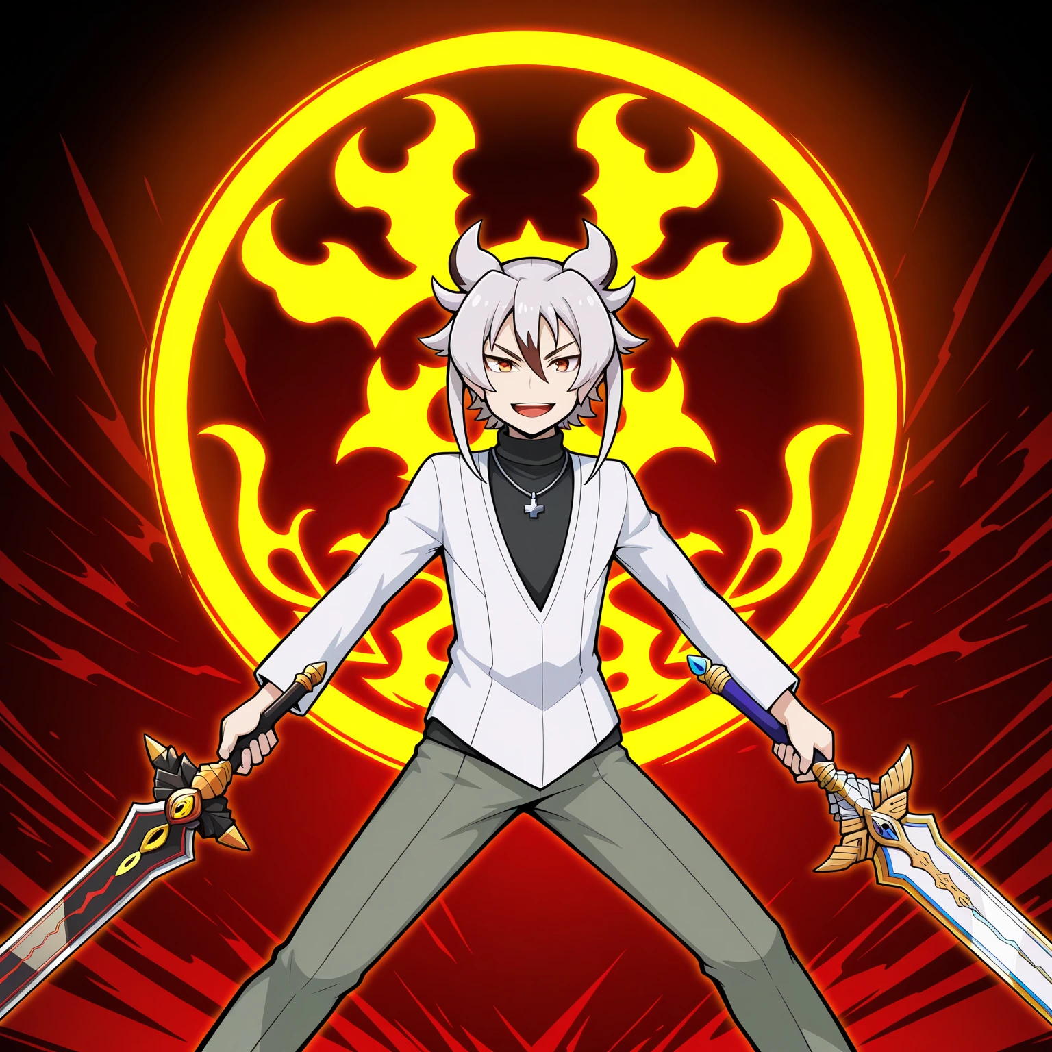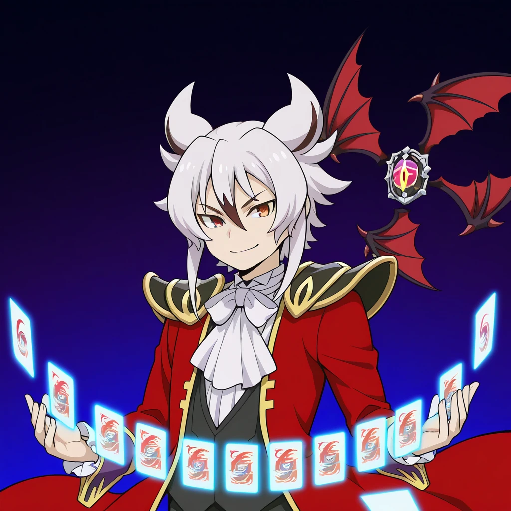 kyoya gaen,coat,red coat,shoulder armor,armor,ascot,bowtie,waistcoat,black pants,knee boots