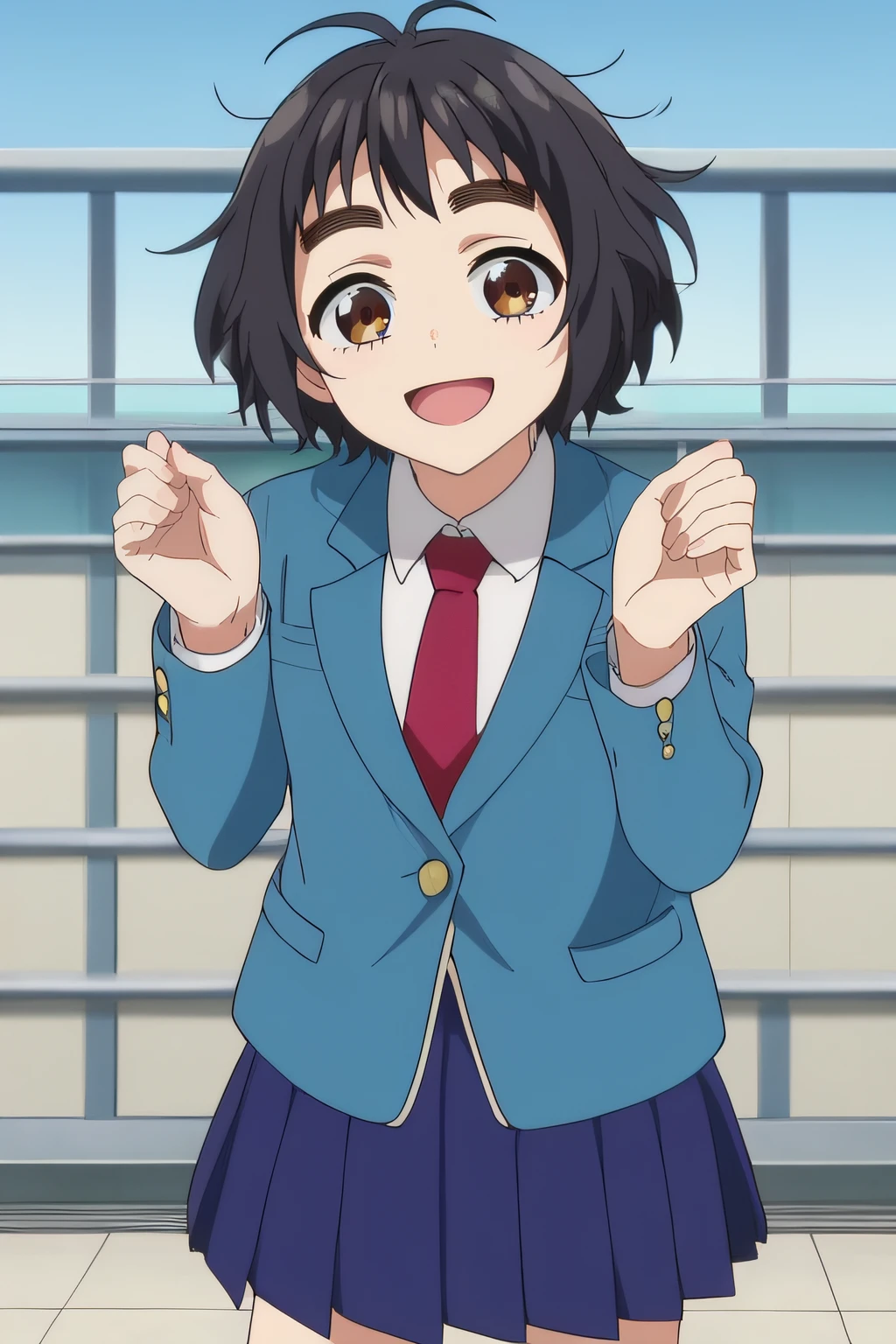 hiyori, black hair, messy hair, brown eyes, thick eyebrows