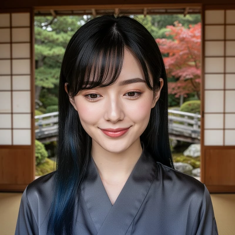 1. 🇯🇵 Japanese22 years old, straight black hair with side bangs, porcelain skin, dark brown almond eyes, wearing a modern silk kimono jacket, cherry blossom garden, soft diffused light