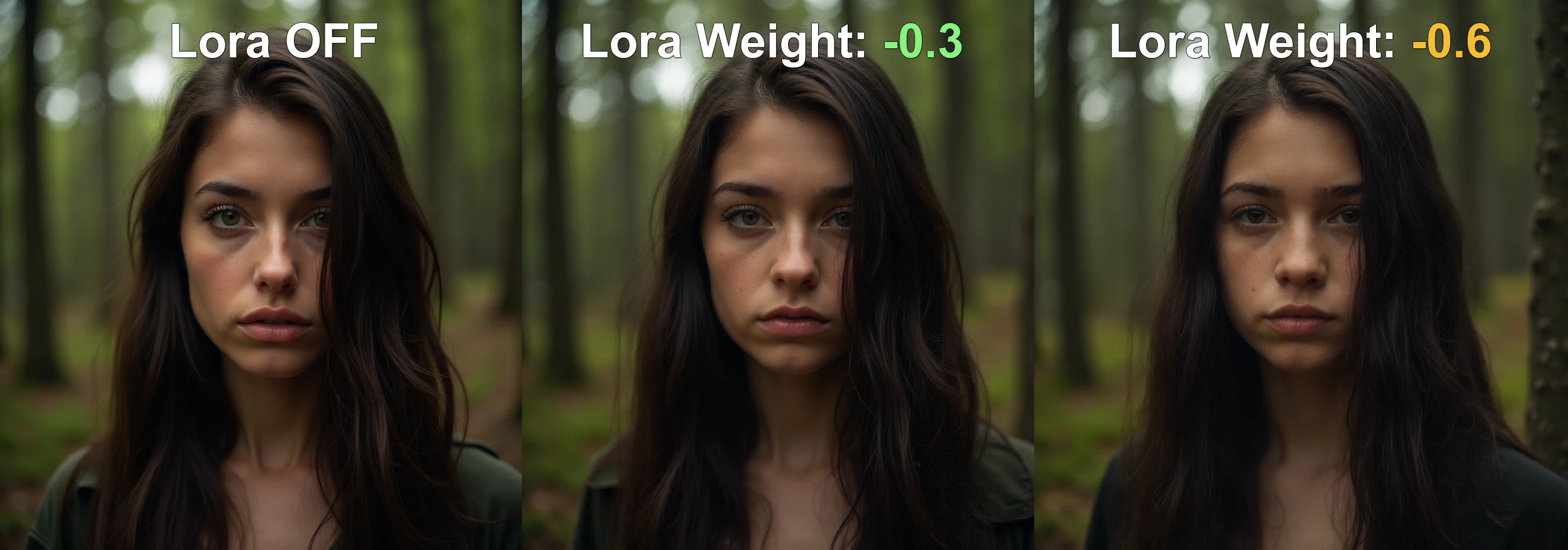 By using this clever trick, Lora will basically tell Flux to generate anything except a typical Flux face. And as result, we'll get beautiful unique faces every time!
