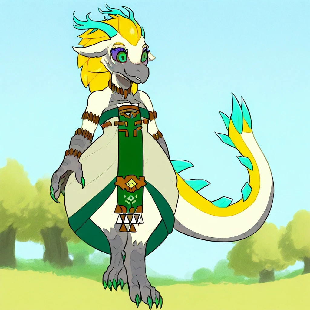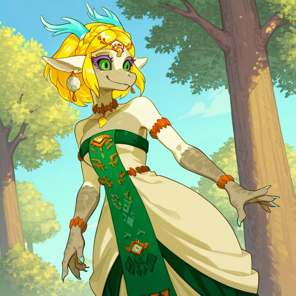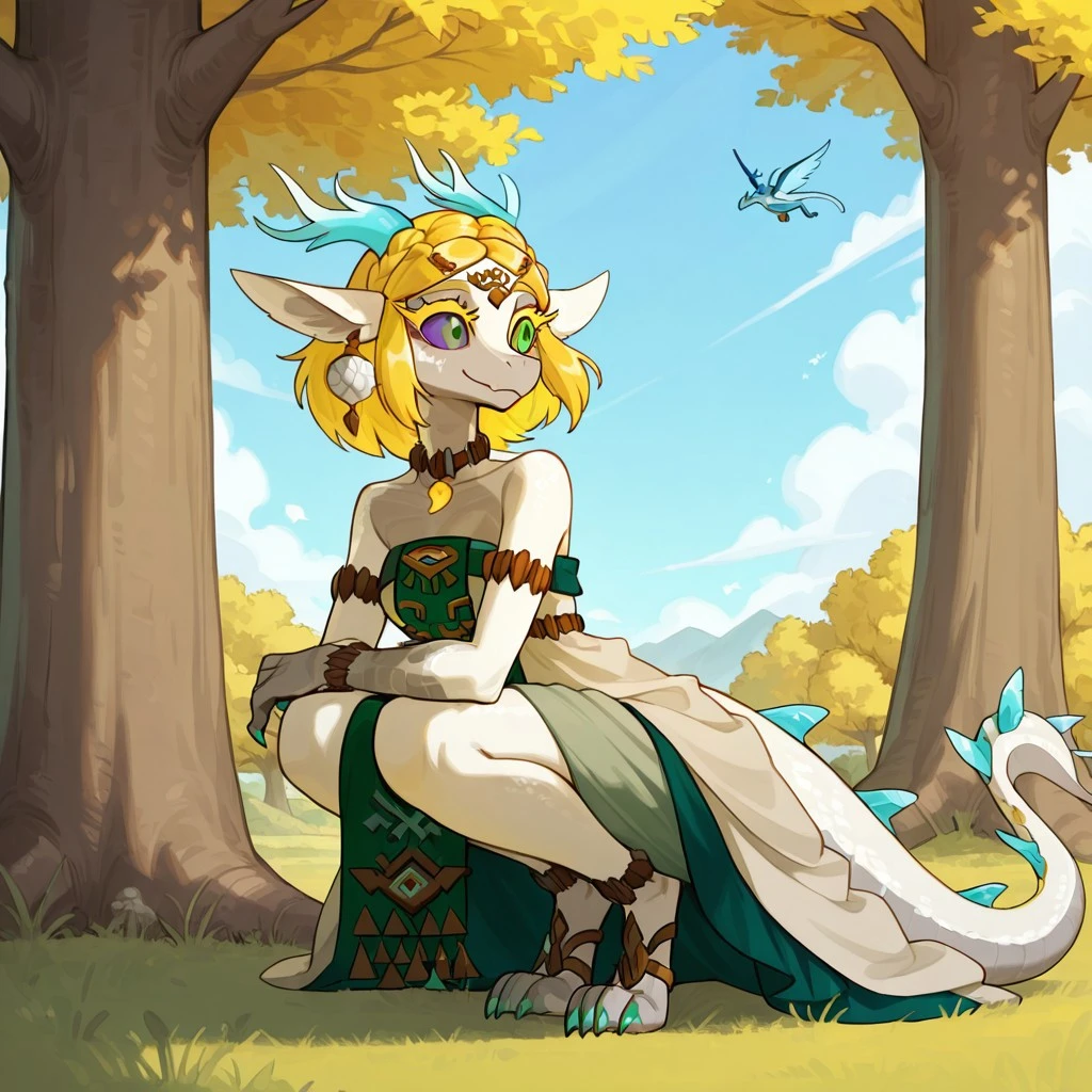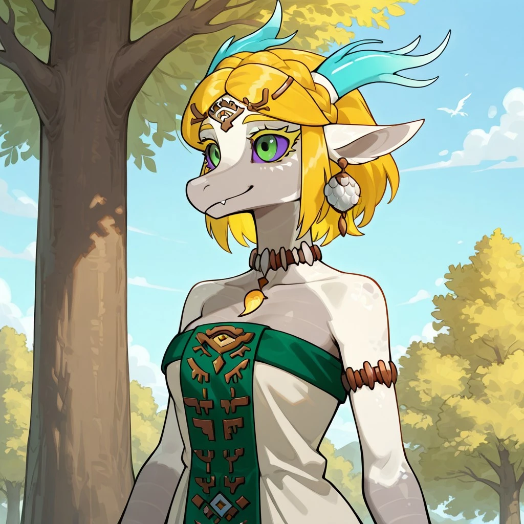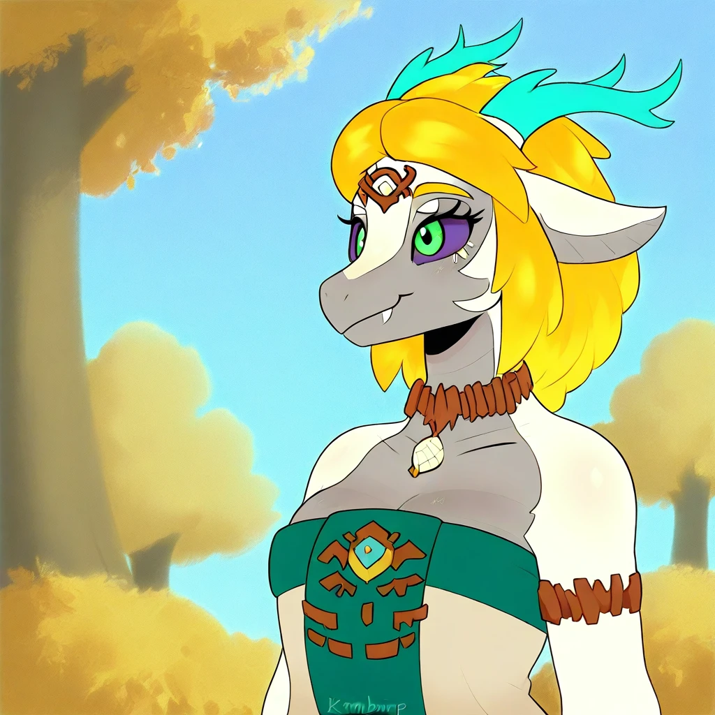 LD(character), Zelda, dragon, anthro, blonde hair, female,blue horns, Top braid,