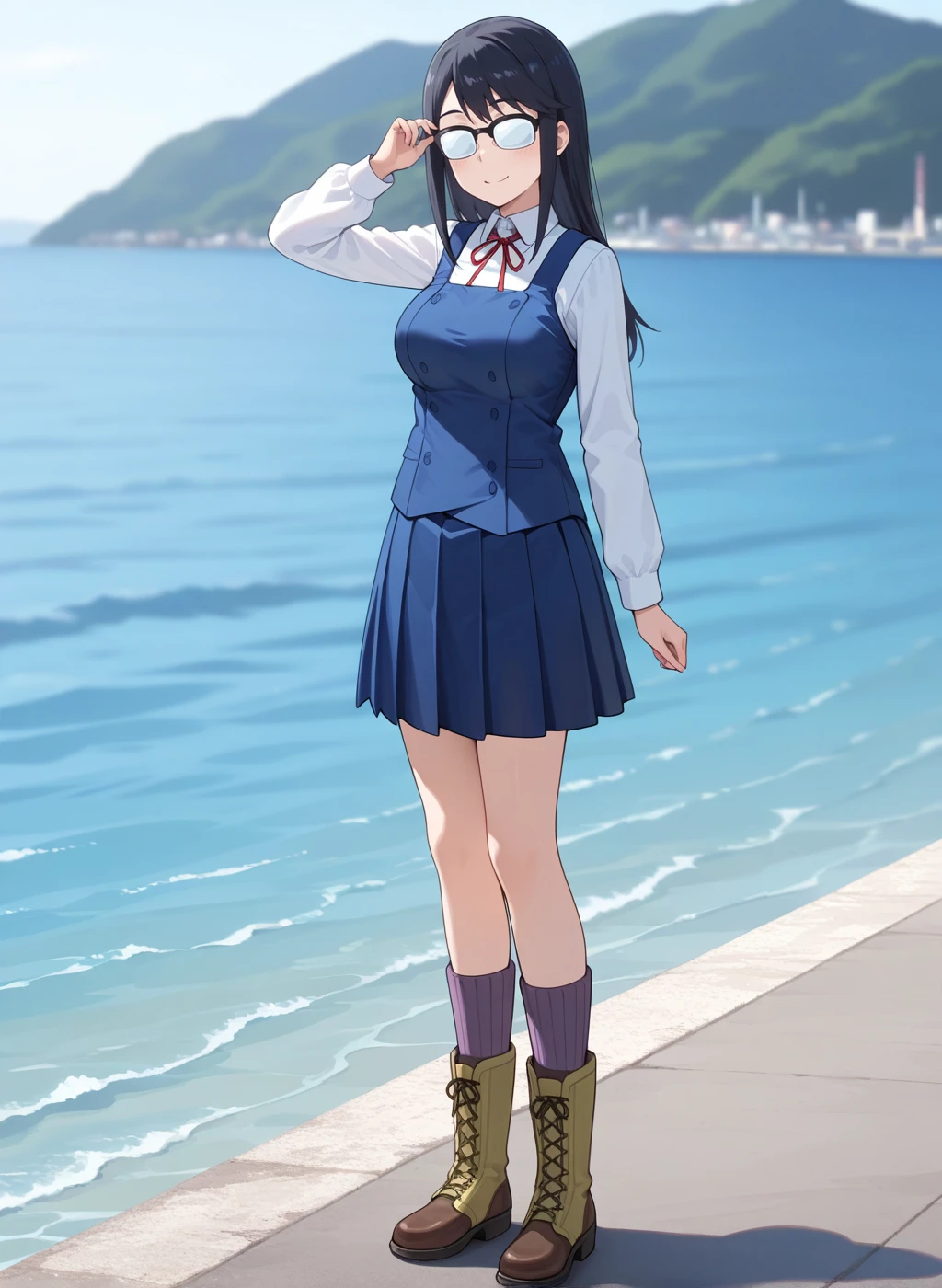 ono_makoto, black hair, long hair,medium breasts, opaque glassesCharacter (IL):