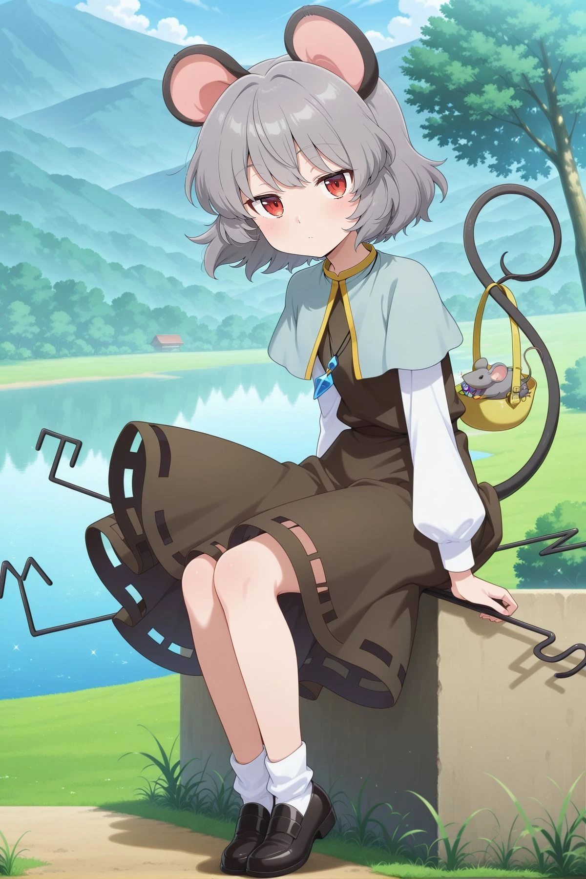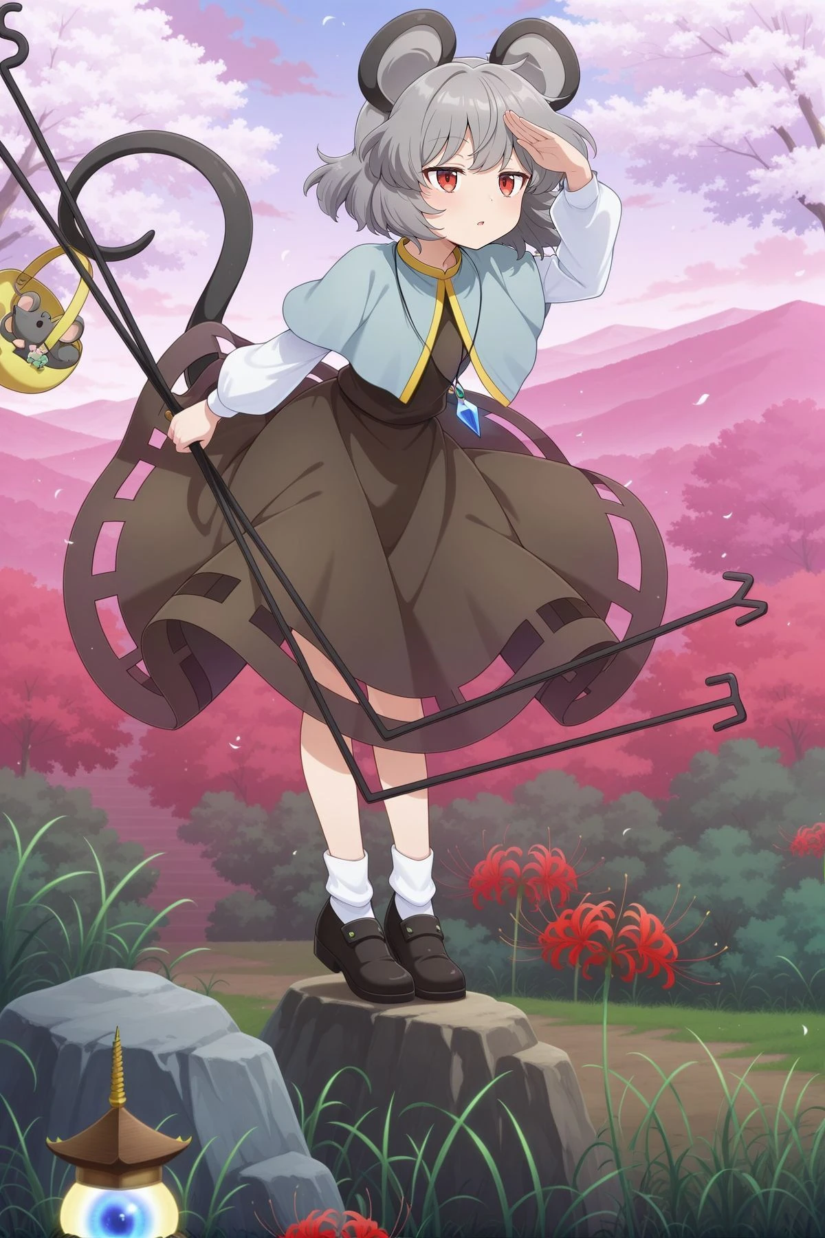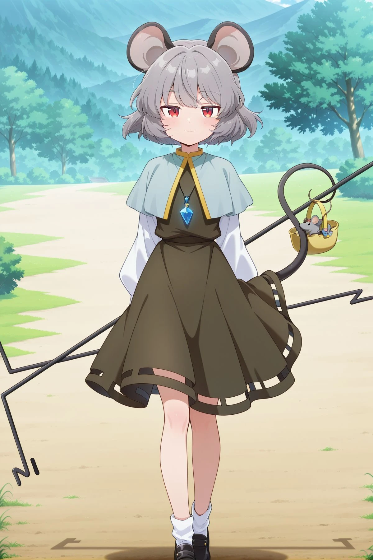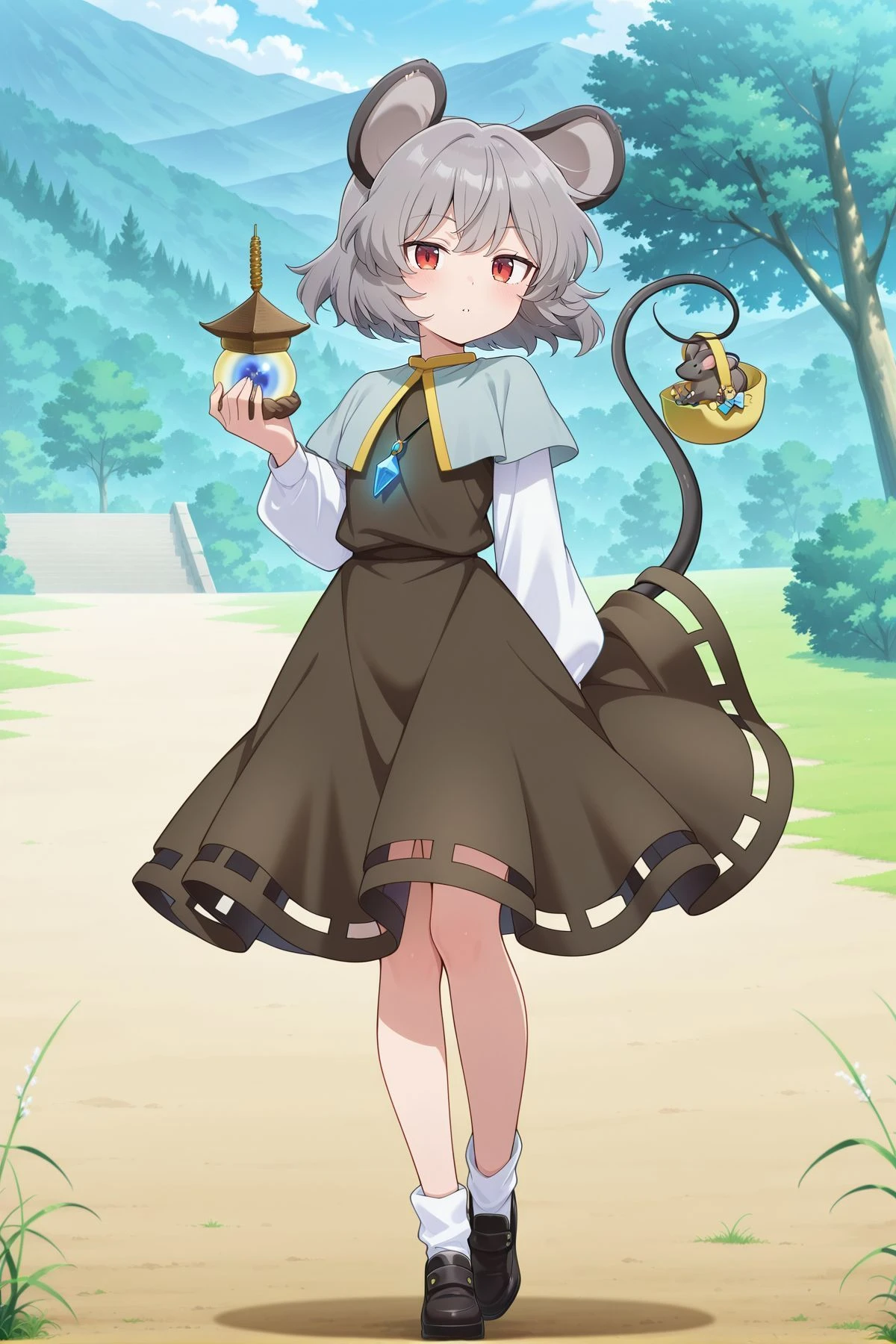 nazrin, 1girl, solo, red eyes, grey hair, short hair, mouse ears, mouse tail,