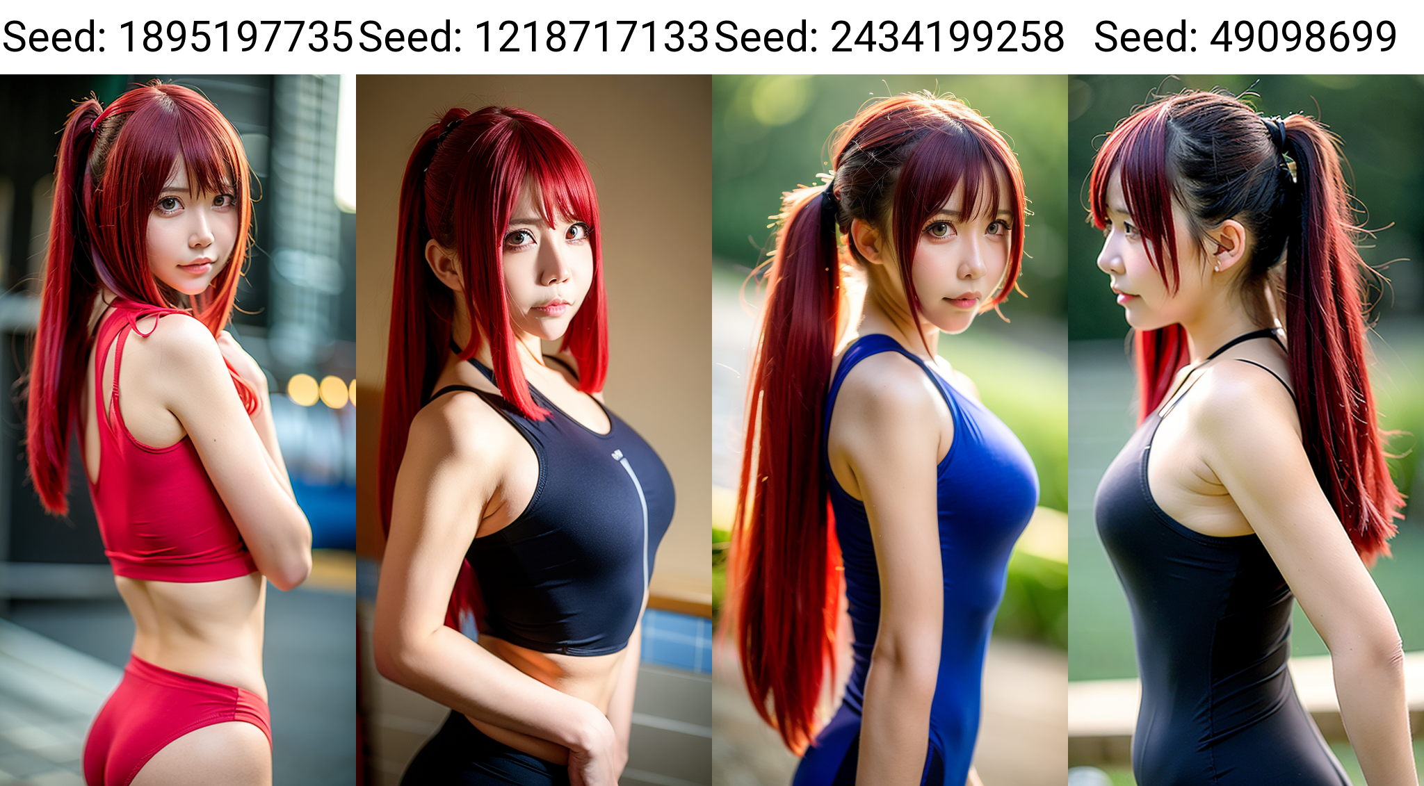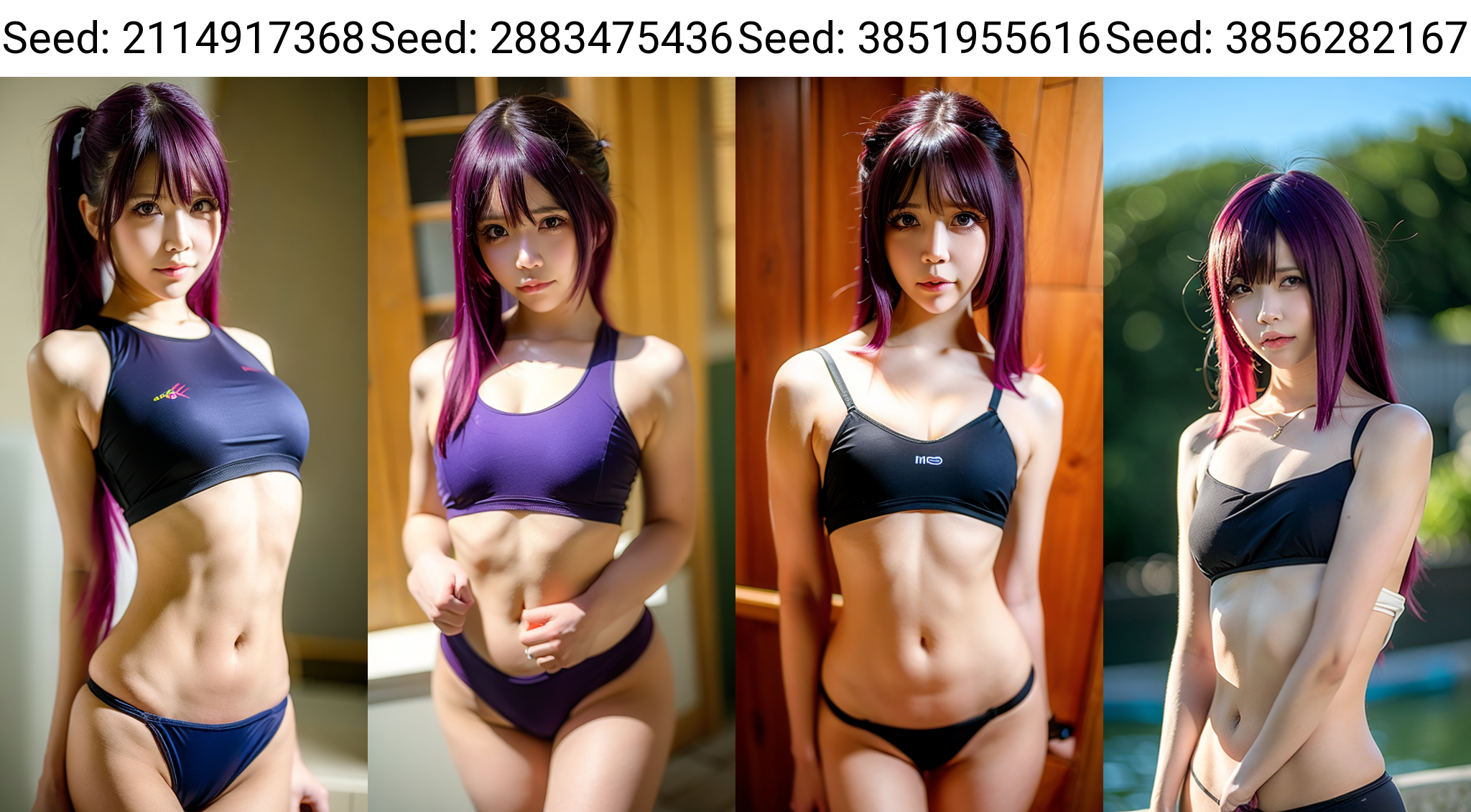 Trained with smaller repeats number (both num_train and num_regul: 8->4), the model now gives much better results when generating photos from behind and from side. And it's able to generate smaller boobs now!