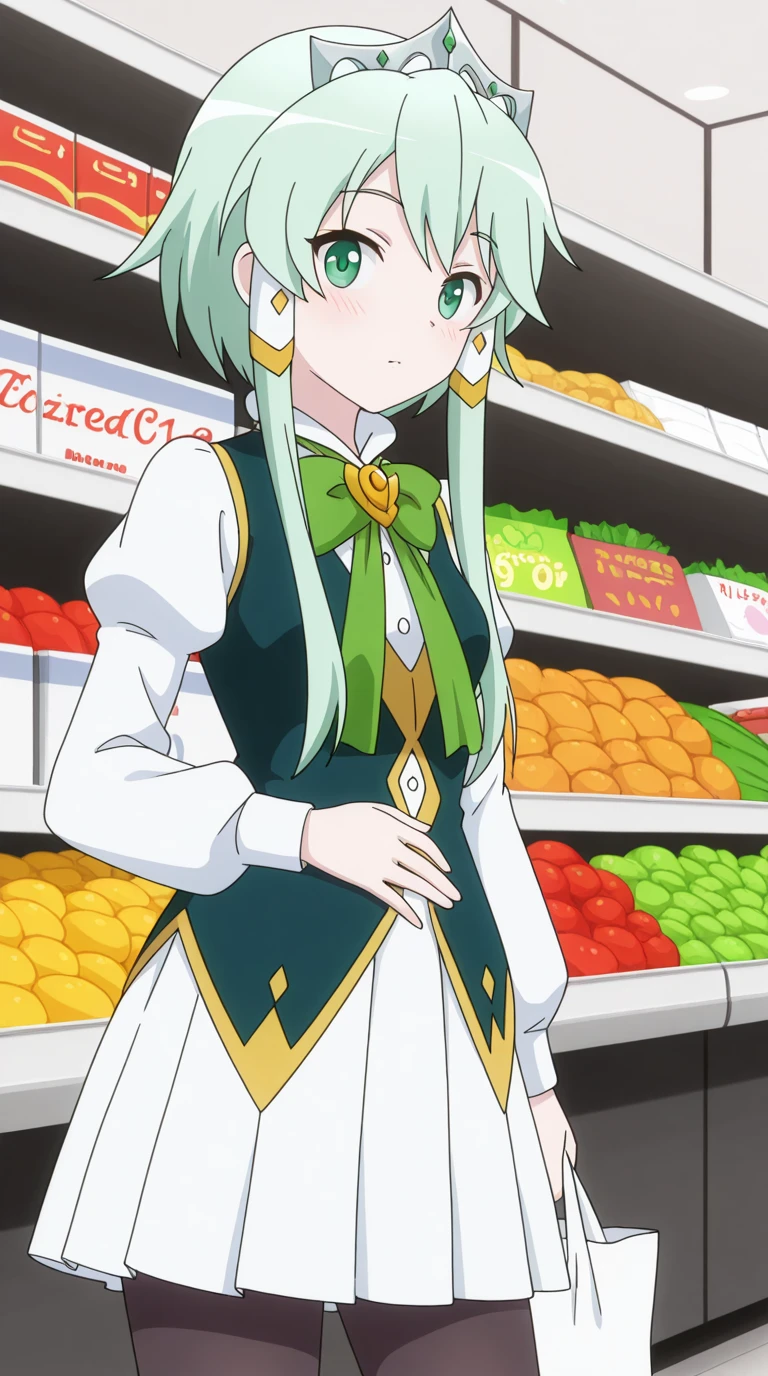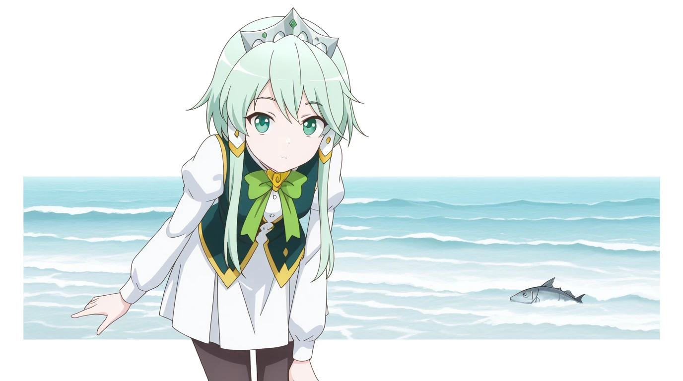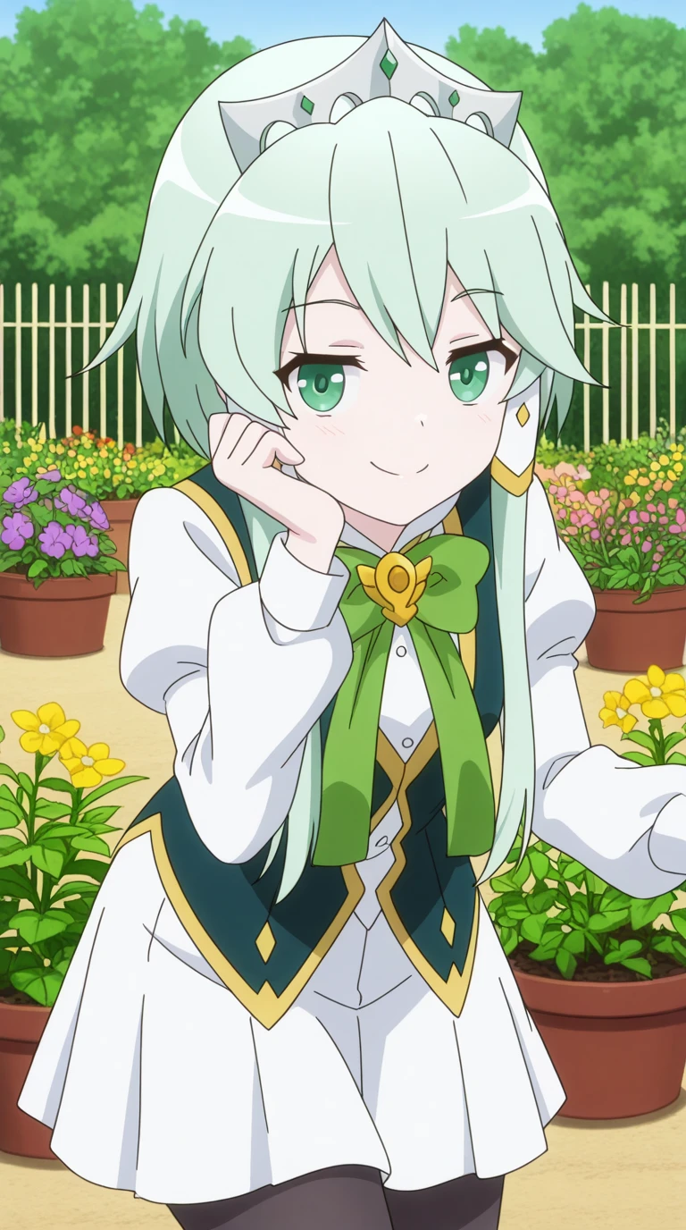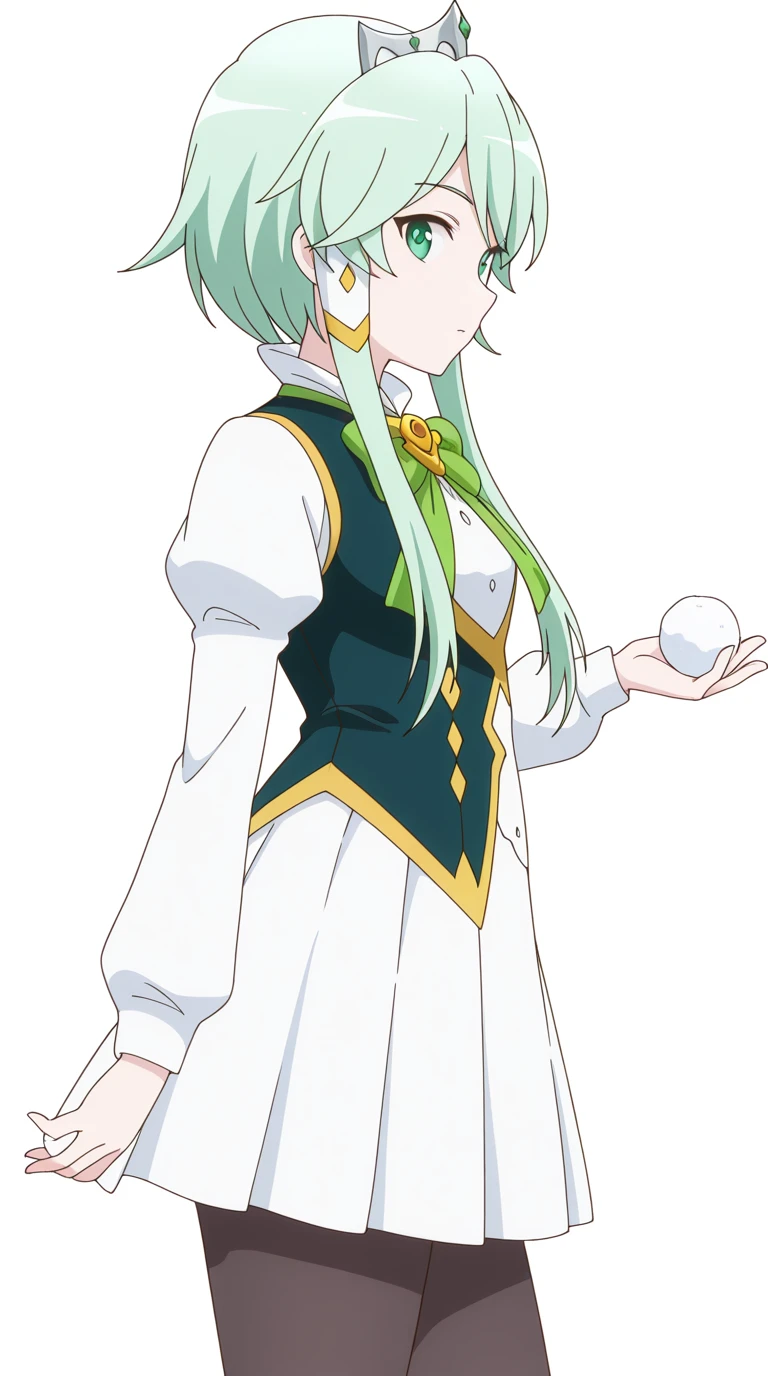 lucia rea regulus, long hair, green eyes, sidelocks, green hair, hair tubes, short hair with long locks, anime screencap