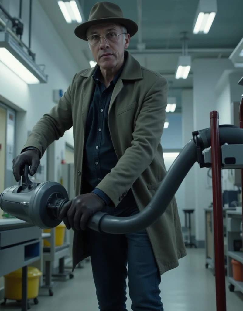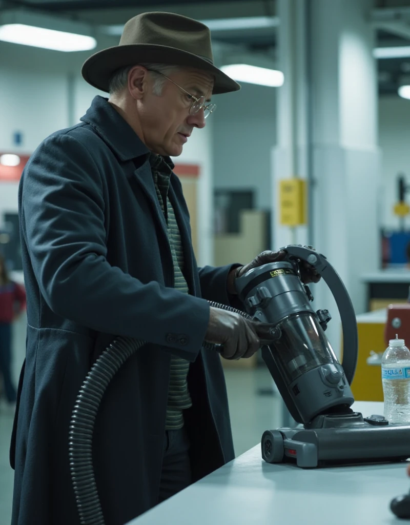 Dyson Ido is a man with a hat and glasses and a long jacket