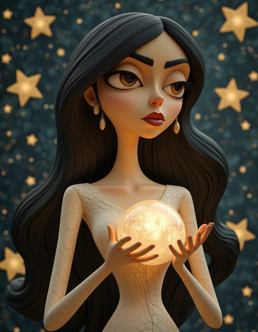 "3D Caricature" combines exaggerated proportions with realistic 3D rendering. The character has stylized features, such as large eyes and a defined expression, while maintaining a sense of depth and texture thanks to the 3D modeling.