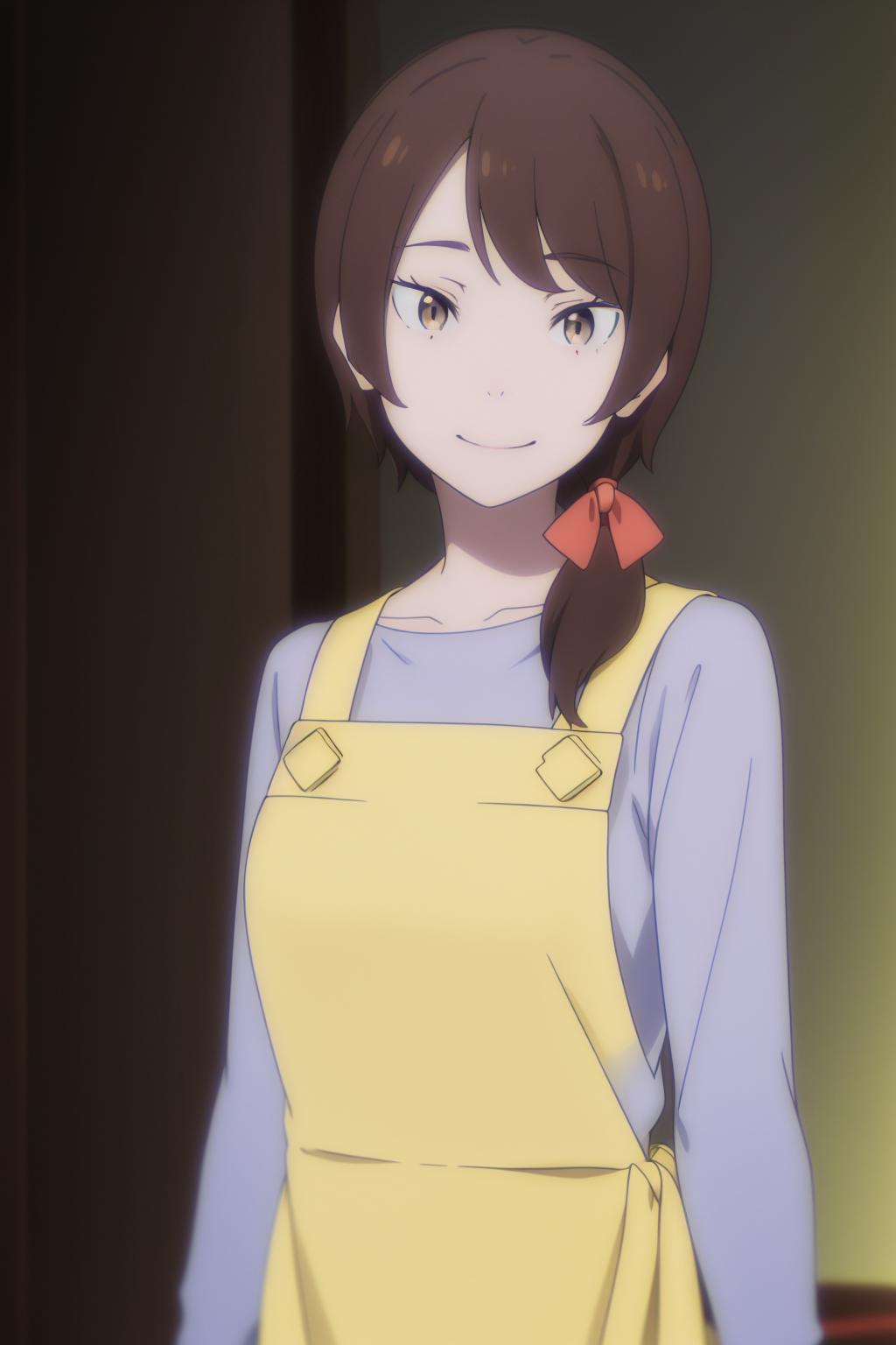 1girl,菜月菜穗子,solo,long hair,brown hair,red bow,hair ribbon,low ponytail,bangs,brown eyes,