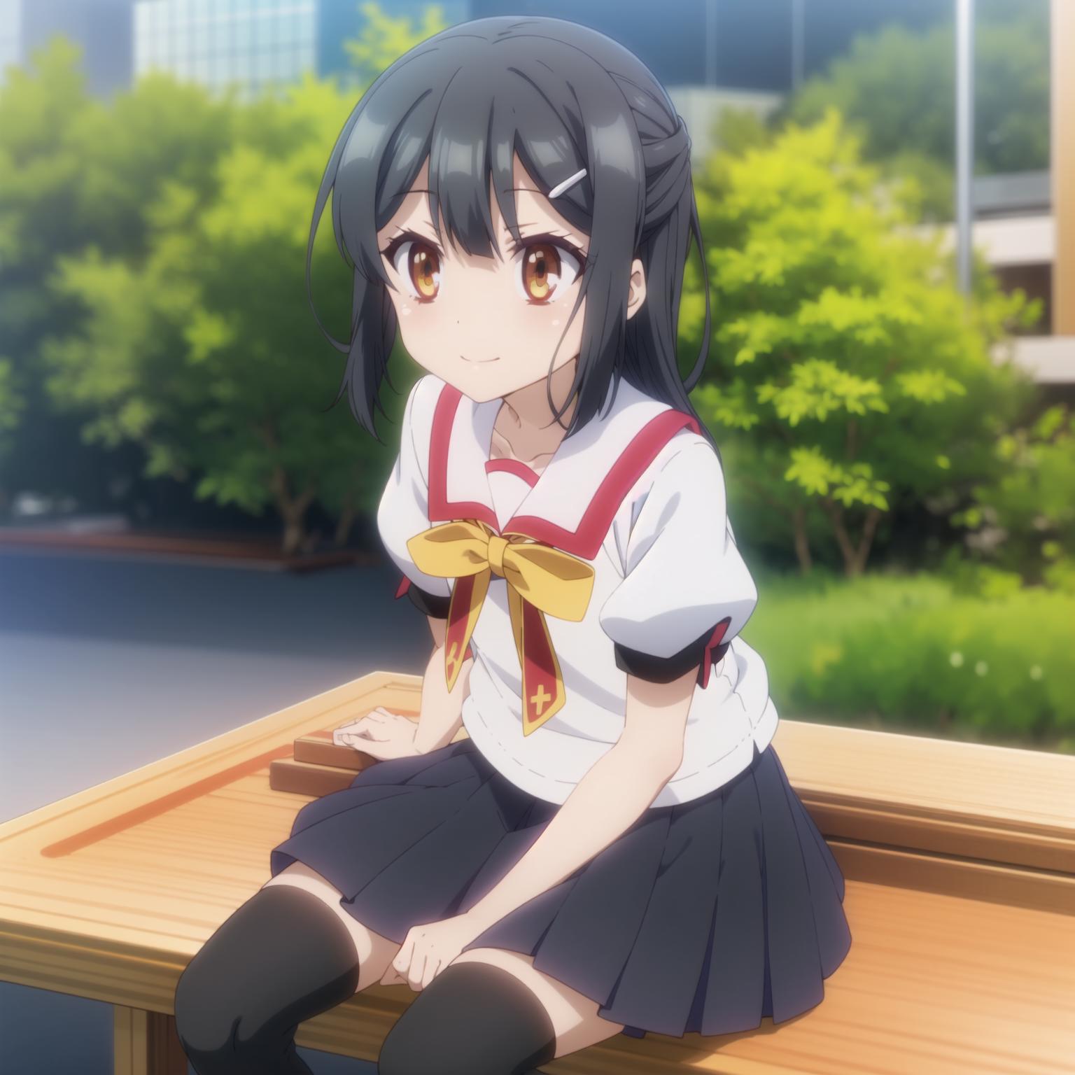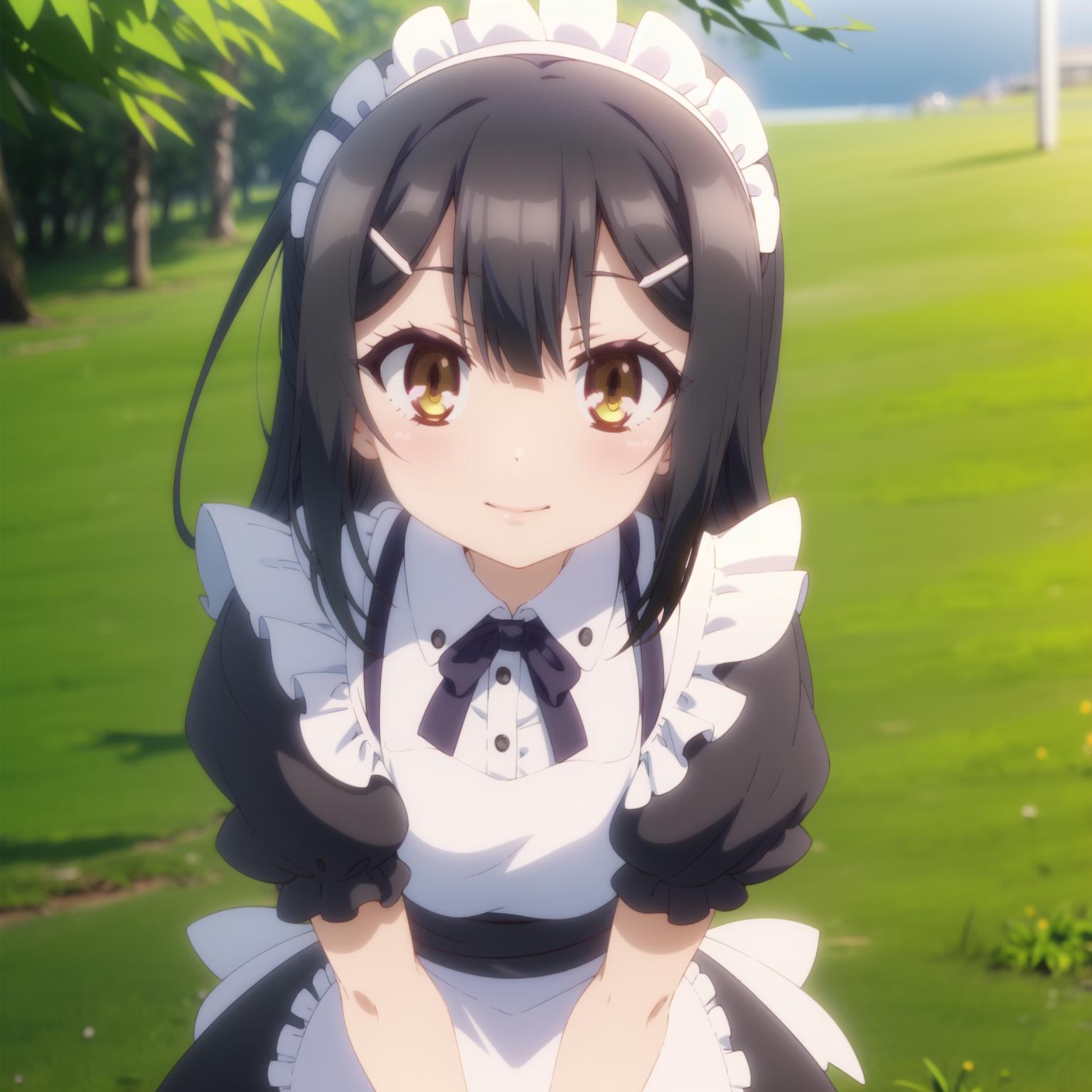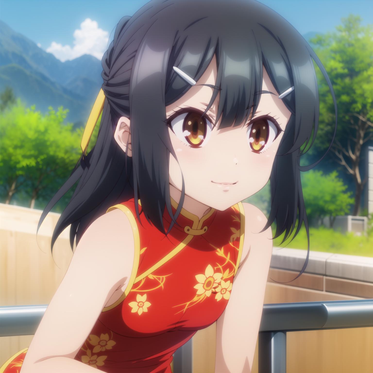 ,miyu,brown_eyes,black_hair,long_hair,bangs,hair_between_eyes,hair_ornament,hairclip,