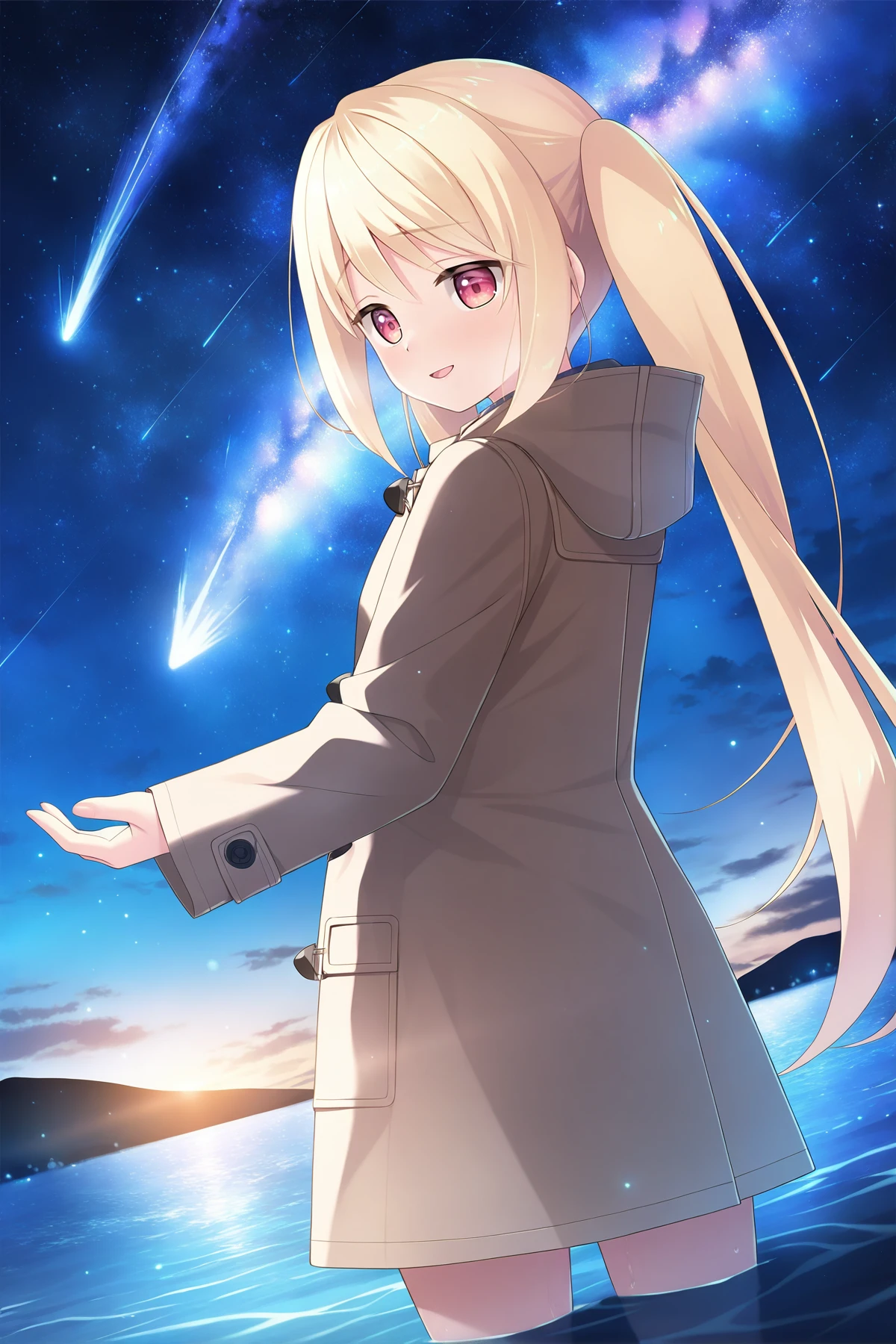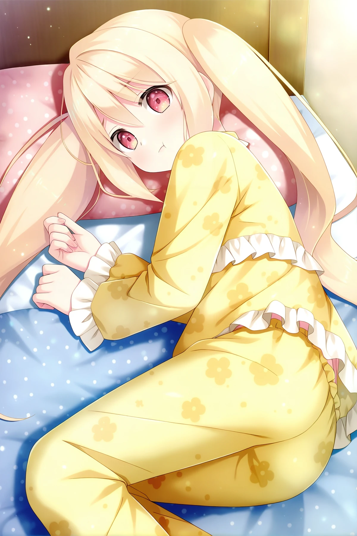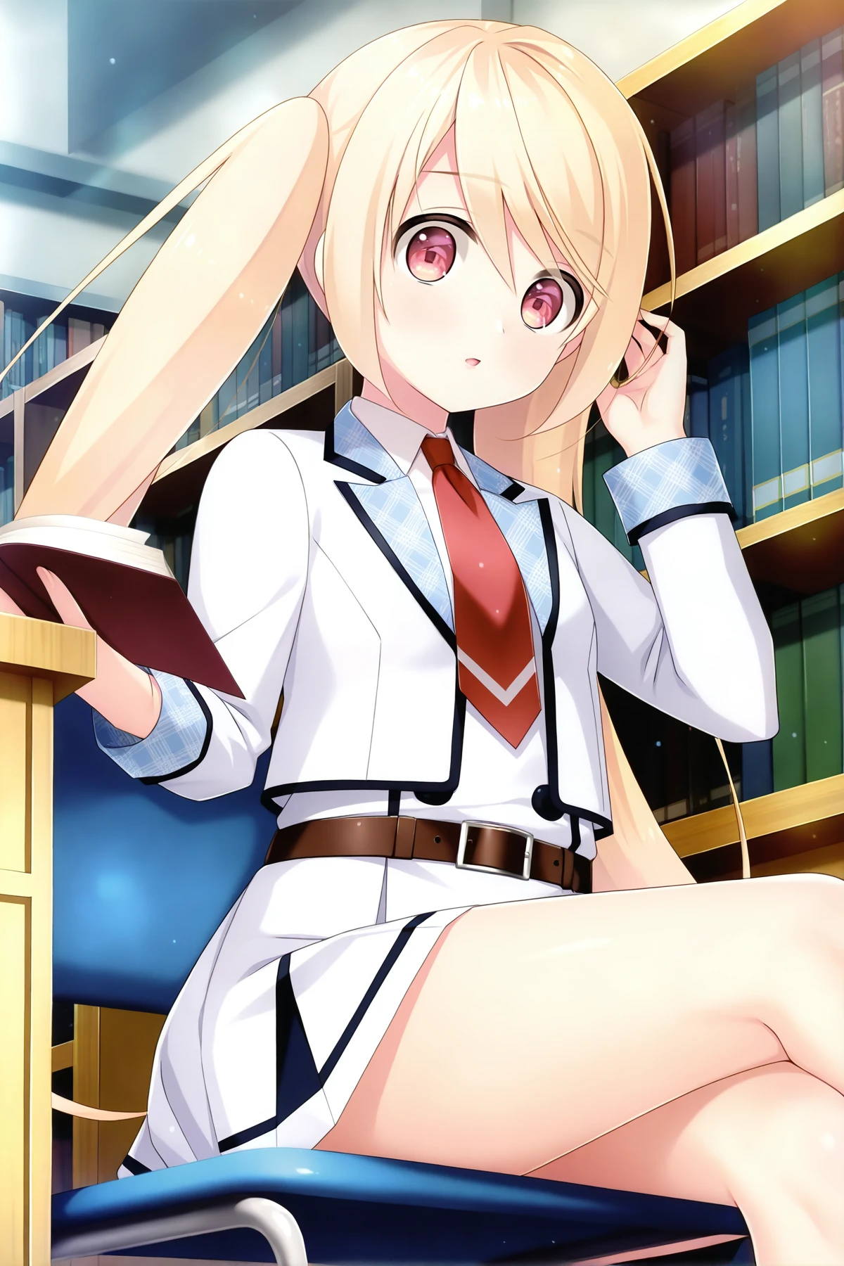 人物特征:nabatake, 1girl, blonde hair, long hair, twintails, red eyes